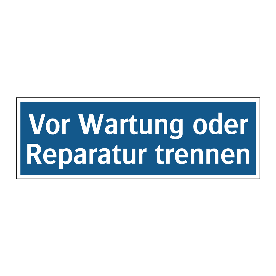 Gebotsschild mit dem Text Vor Wartung oder Reparatur trennen