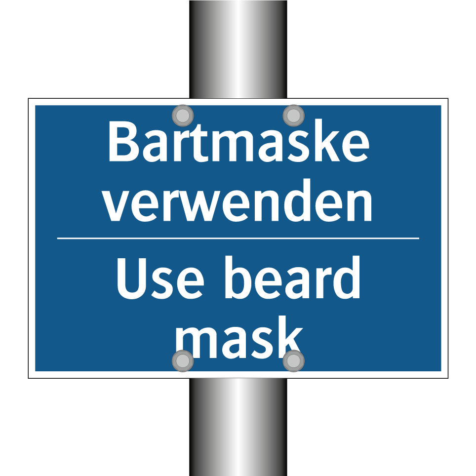 Zweisprachiges Verbotsschild mit deutschem Text Bartmaske verwenden und englischem Text Use beard mask