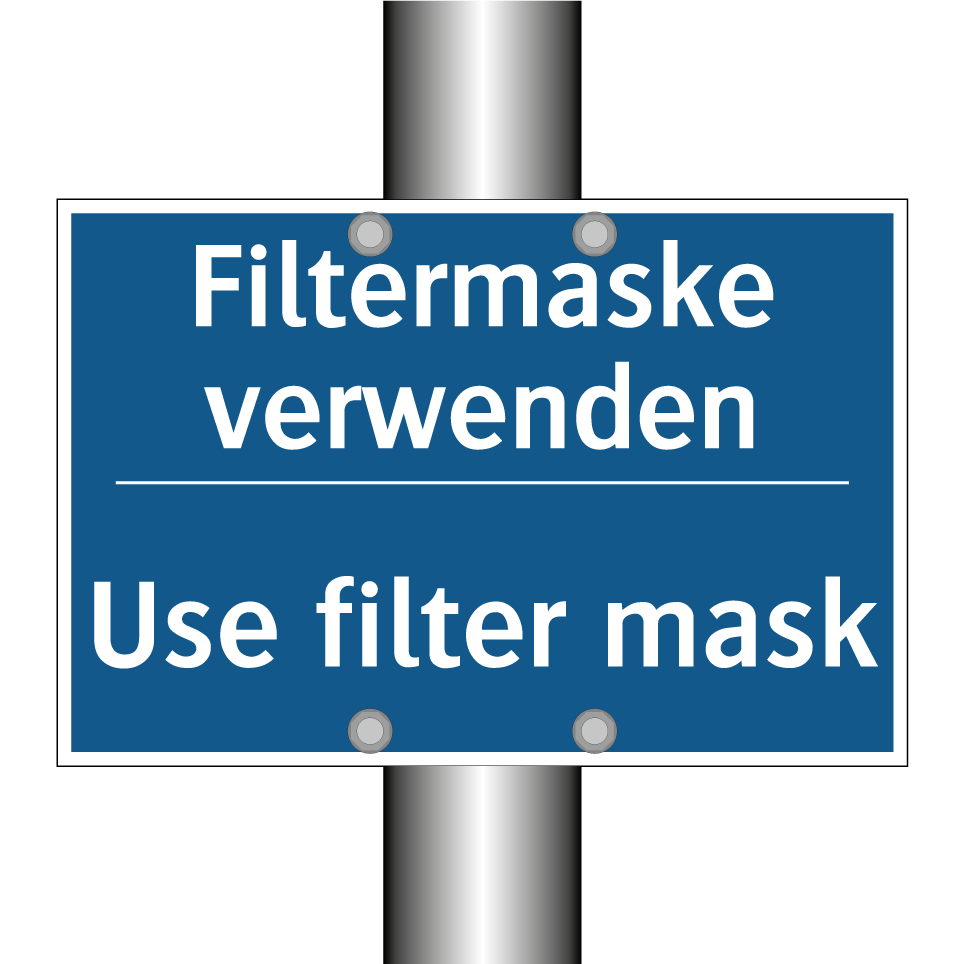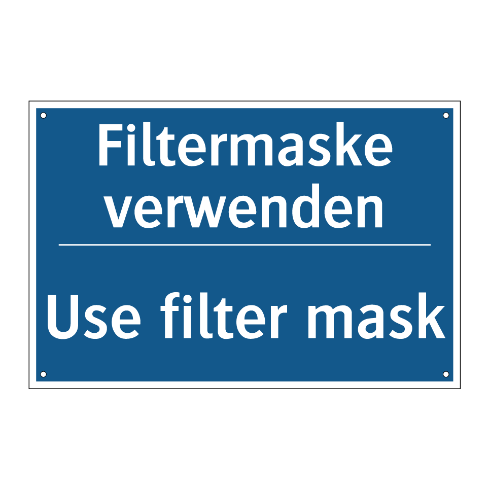 Zweisprachiges Verbotsschild mit deutschem Text Filtermaske verwenden und englischem Text Use filter mask