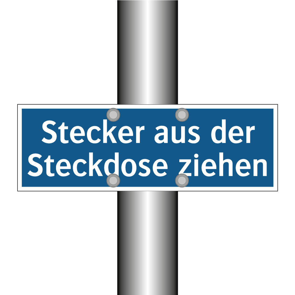 Diese Gebotsschild ist ein unverzichtbares Element für Arbeitsplätze und öffentliche Bereiche, um Sicherheit und Ordnung zu gewährleisten. Mit ihrer klaren blauen Hintergrundfarbe und der deutlichen weißen Schrift fordert sie dazu auf, den Stecker aus der Steckdose zu ziehen. Diese Anweisung ist besonders wichtig in Umgebungen, in denen elektrische Geräte häufig verwendet werden, wie in Werkstätten, Büros oder Produktionsstätten. Die Platzierung dieser Gebotsschild in der Nähe von Steckdosen oder elektrischen Geräten erinnert Mitarbeiter und Besucher daran, Vorsichtsmaßnahmen zu treffen und Unfälle zu vermeiden. Sie dient als ständige Erinnerung an die Notwendigkeit, elektrische Geräte sicher zu handhaben und trägt so zur allgemeinen Sicherheit bei.