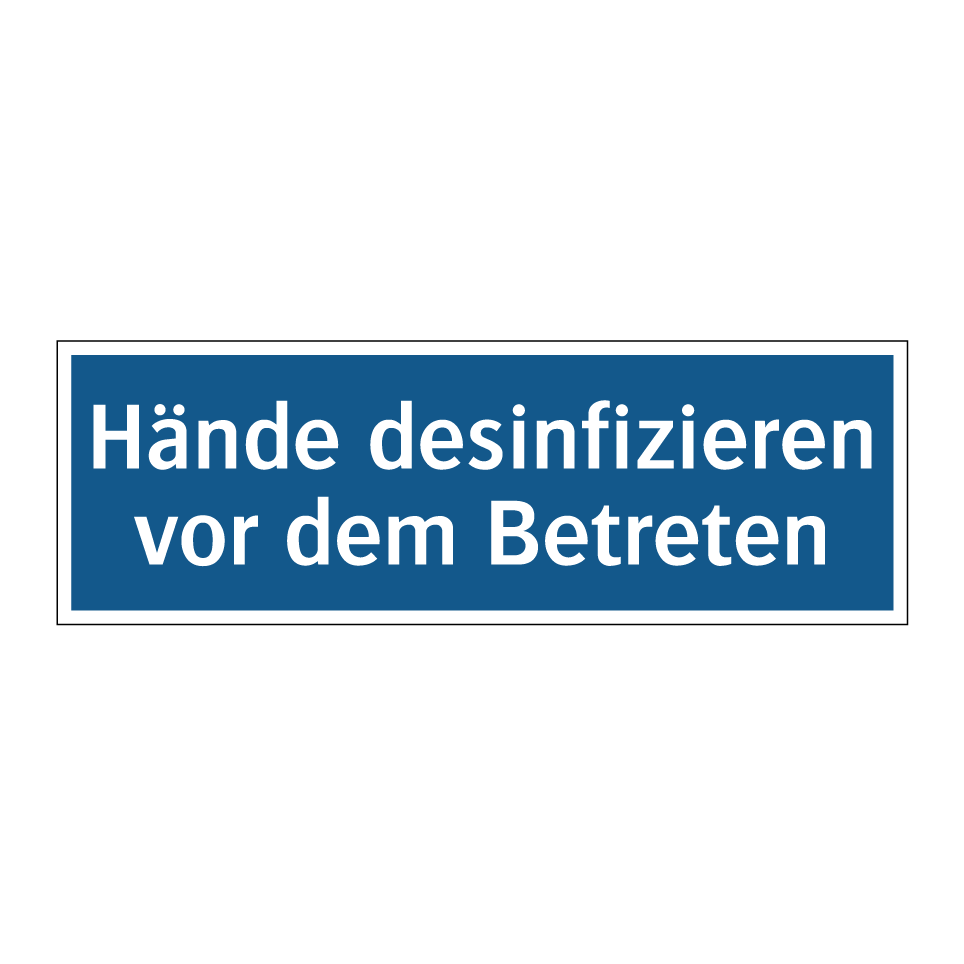 Diese Gebotsschild ist ein unverzichtbares Element für jeden Eingangsbereich, der auf Hygiene achtet. Sie erinnert Besucher daran, ihre Hände zu desinfizieren, bevor sie den Raum betreten, und trägt so zur Verhinderung der Verbreitung von Keimen bei. Ideal für Krankenhäuser, Arztpraxen, Büros und öffentliche Einrichtungen, wo Sauberkeit oberste Priorität hat. Die auffällige blaue Hintergrundfarbe mit weißem Text sorgt dafür, dass die Botschaft klar und deutlich wahrgenommen wird. Platzieren Sie diese Gebotsschild an strategischen Punkten wie Eingängen, Empfangsbereichen oder in der Nähe von Desinfektionsstationen, um die Einhaltung der Hygienemaßnahmen zu fördern.