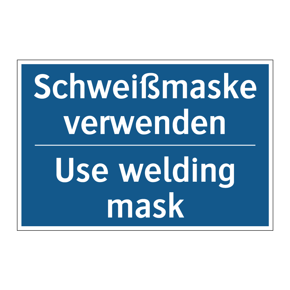 Zweisprachiges Verbotsschild mit deutschem Text Schweißmaske verwenden und englischem Text Use welding mask