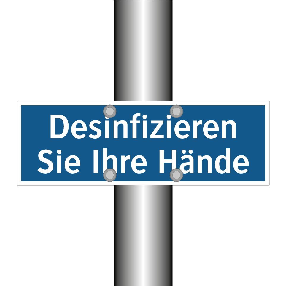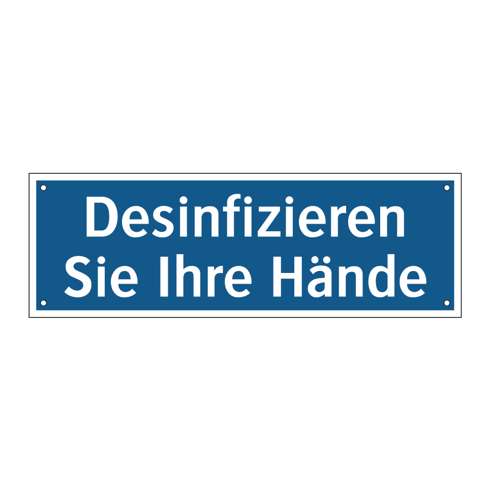 Diese Gebotsschild mit blauem Hintergrund und weißer Schrift ist ideal für den Einsatz in Bereichen, in denen Hygiene oberste Priorität hat. Sie erinnert daran, die Hände zu desinfizieren und fördert so die Einhaltung von Hygienestandards. Perfekt geeignet für Krankenhäuser, Arztpraxen, Büros, Schulen und öffentliche Einrichtungen, wo viele Menschen zusammenkommen. Diese Hinweistafel kann an Eingängen, in Waschräumen oder in der Nähe von Desinfektionsstationen angebracht werden, um die Besucher und Mitarbeiter an die Wichtigkeit der Handhygiene zu erinnern. Ein unverzichtbares Element zur Förderung der Gesundheit und Sicherheit in jeder Umgebung.