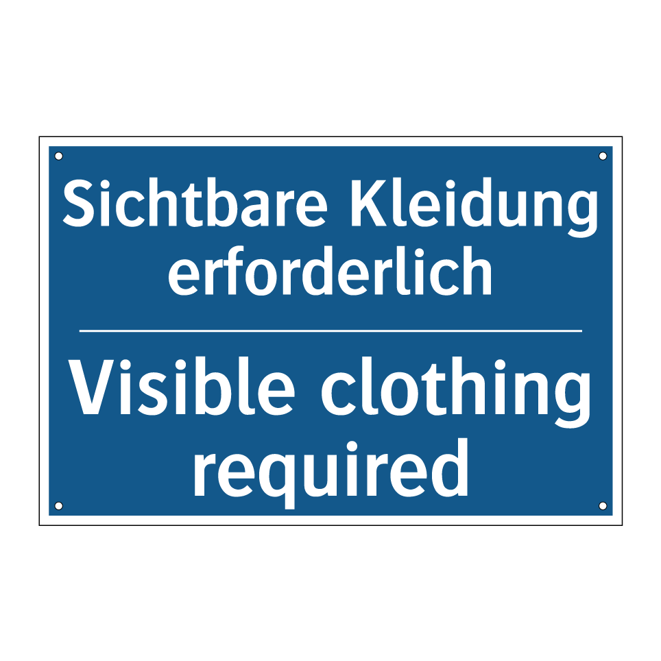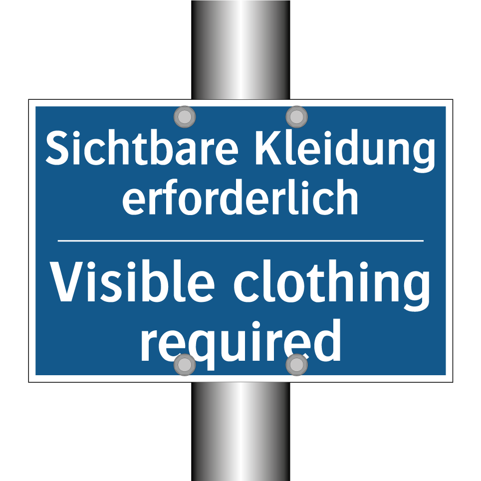 Zweisprachiges Verbotsschild mit deutschem Text Sichtbare Kleidung erforderlich und englischem Text Visible clothing required