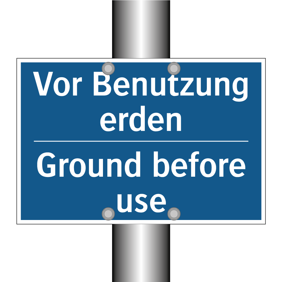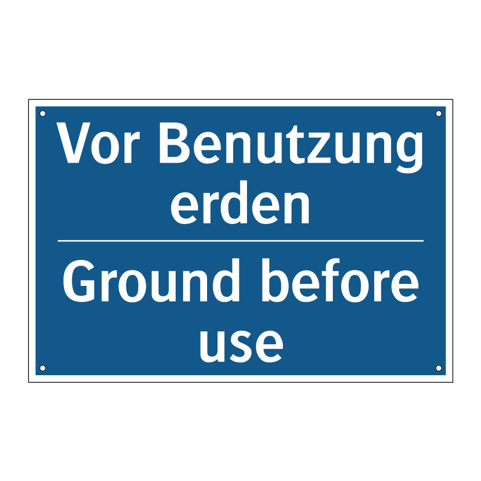 Zweisprachiges Verbotsschild mit deutschem Text Vor Benutzung erden und englischem Text Ground before use