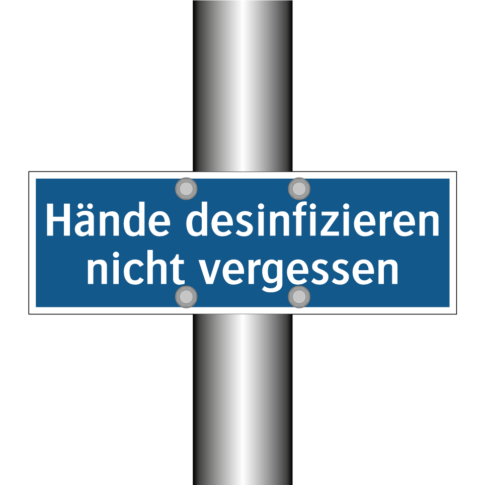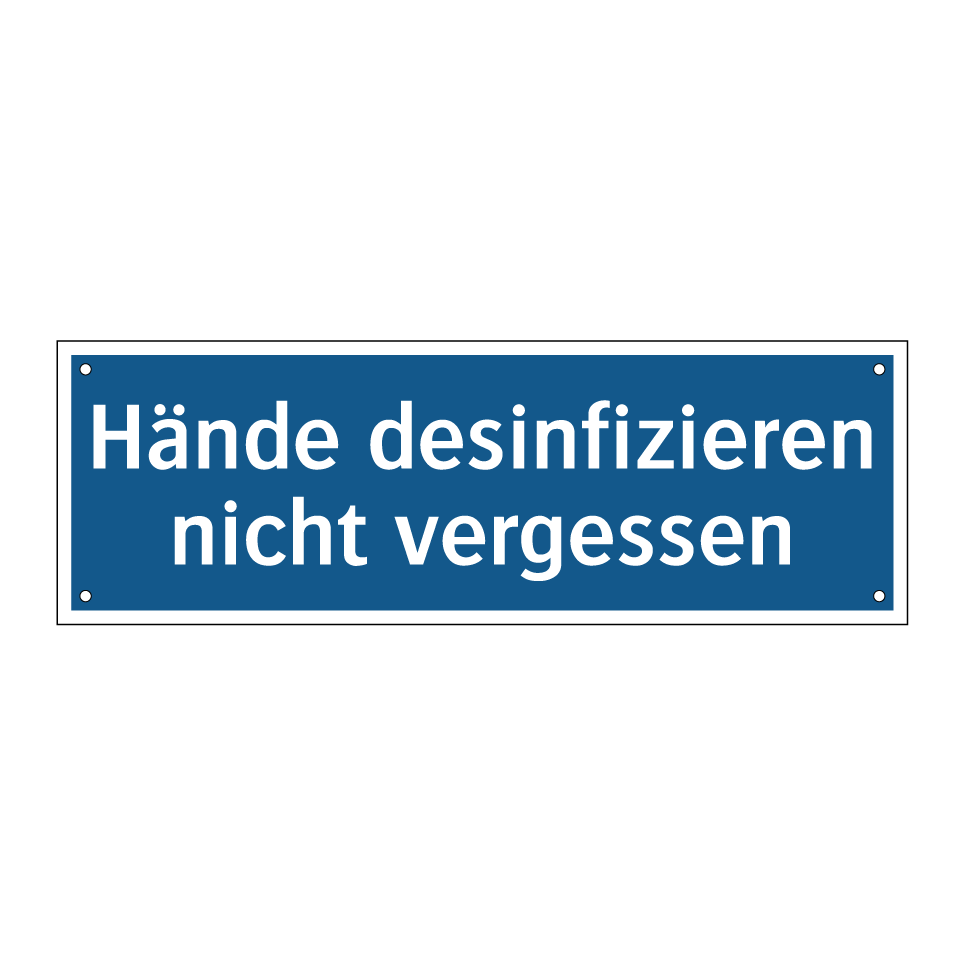 Gebotsschild mit dem Text Hände desinfizieren nicht vergessen
