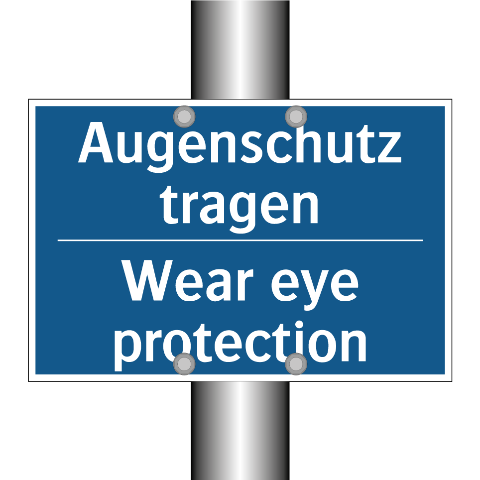 Diese Gebotsschild ist ideal für Arbeitsumgebungen, in denen Augenschutz unerlässlich ist. Mit ihrer auffälligen blauen Hintergrundfarbe und der klaren weißen Schrift zieht sie sofort die Aufmerksamkeit auf sich und erinnert Mitarbeiter und Besucher daran, ihre Augen zu schützen. Die zweisprachige Beschriftung auf Deutsch und Englisch macht sie besonders nützlich in internationalen oder mehrsprachigen Arbeitsbereichen, da sie sicherstellt, dass die Sicherheitsanweisung von einem breiten Publikum verstanden wird. Diese Gebotsschilder sind perfekt für den Einsatz in Fabriken, Werkstätten, Laboren und anderen industriellen Umgebungen, wo das Risiko von Augenverletzungen besteht. Platzieren Sie sie an Eingängen, in der Nähe von Maschinen oder an anderen strategischen Punkten, um die Sicherheit zu maximieren.