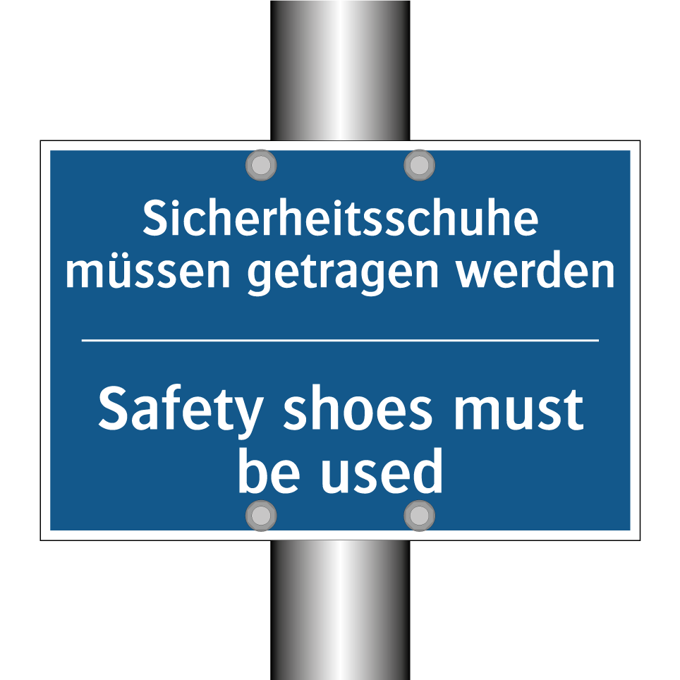 Diese Gebotsschild ist ideal für Arbeitsumgebungen, in denen Sicherheitsschuhe unerlässlich sind. Mit ihrer auffälligen blauen Hintergrundfarbe und der klaren weißen Schrift sorgt sie dafür, dass die Sicherheitsvorschriften nicht übersehen werden. Die zweisprachige Beschriftung auf Deutsch und Englisch macht sie besonders nützlich in internationalen oder mehrsprachigen Teams, da sie die Kommunikation und das Verständnis verbessert. Diese Gebotsschild kann an Eingängen zu Baustellen, in Fabriken oder in Lagerhäusern angebracht werden, um sicherzustellen, dass alle Mitarbeiter und Besucher die erforderlichen Sicherheitsmaßnahmen einhalten. Sie dient als ständige Erinnerung an die Wichtigkeit des Tragens von Sicherheitsschuhen und fördert so eine sichere Arbeitsumgebung.