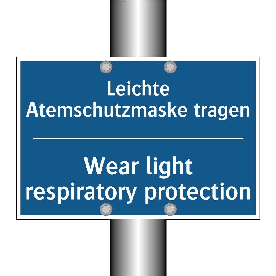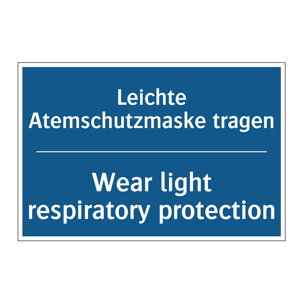 Zweisprachiges Verbotsschild mit deutschem Text Leichte Atemschutzmaske tragen und englischem Text Wear light respiratory protection