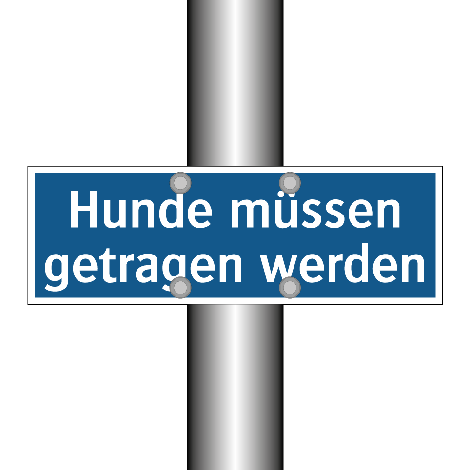 Gebotsschild mit dem Text Hunde müssen getragen werden