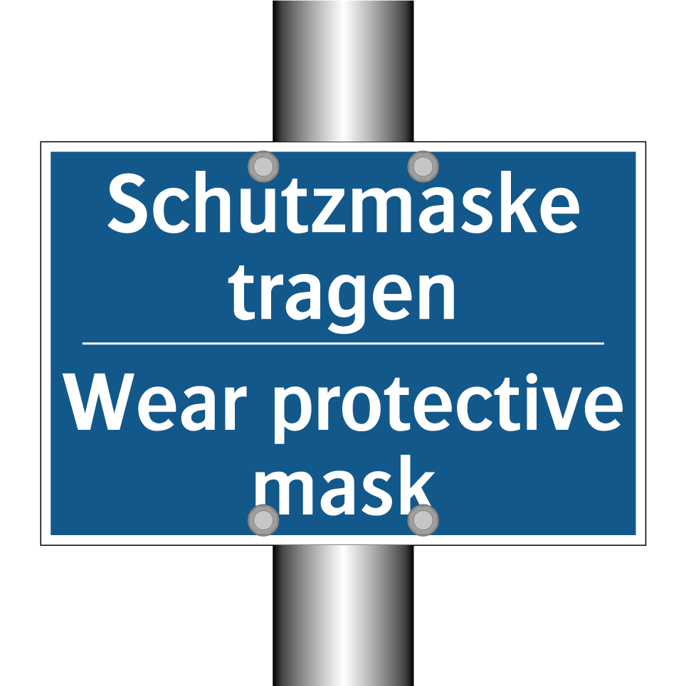 Zweisprachiges Verbotsschild mit deutschem Text Schutzmaske tragen und englischem Text Wear protective mask