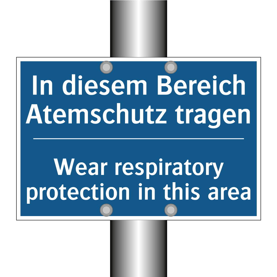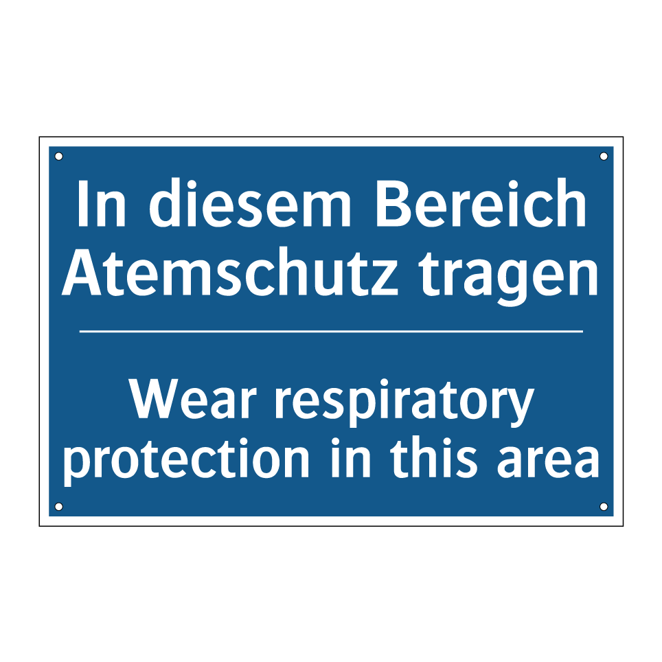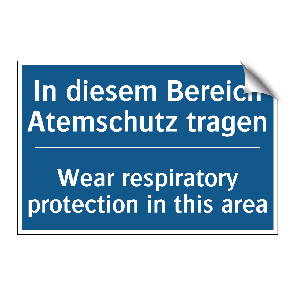 Zweisprachiges Verbotsschild mit deutschem Text In diesem Bereich Atemschutz tragen und englischem Text Wear respiratory protection in this area