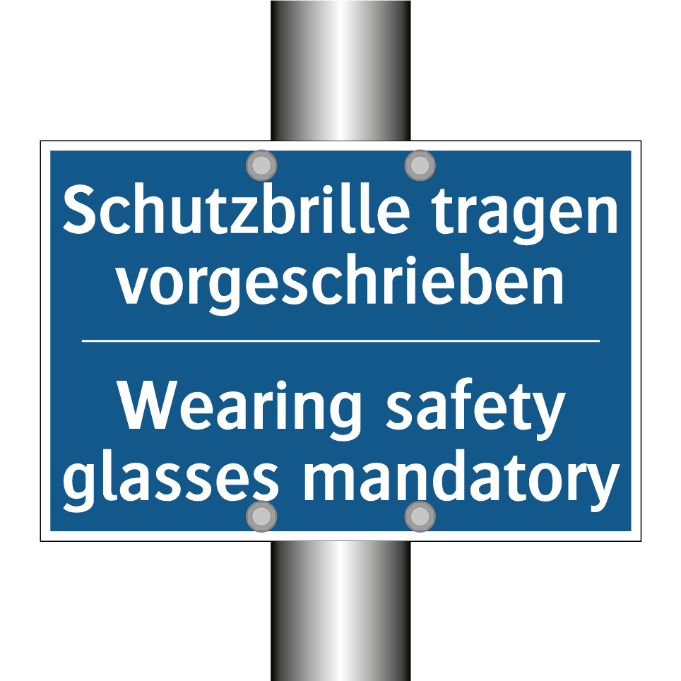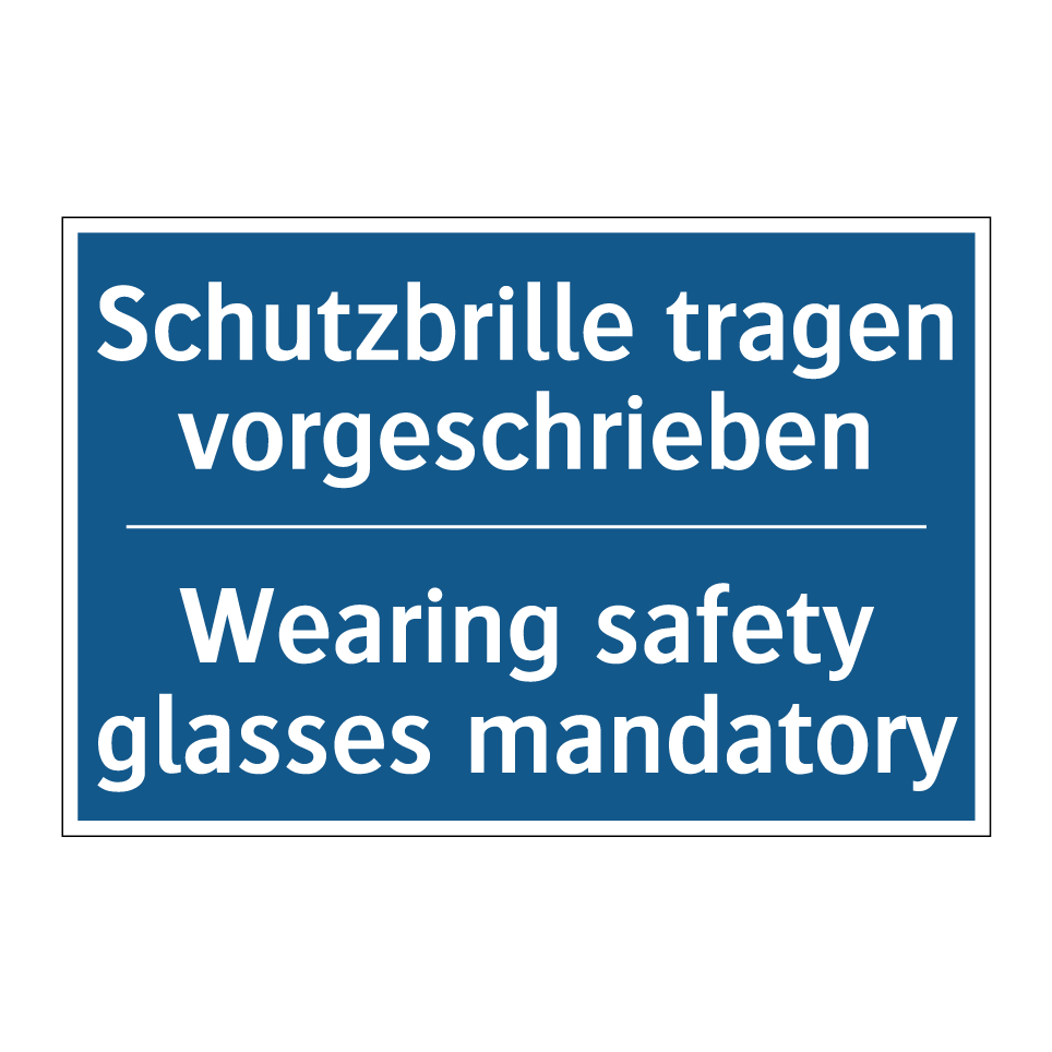 Entdecken Sie die Vielseitigkeit dieser Gebotsschild, die mit ihrer blauen Hintergrundfarbe und weißen Schrift sofort ins Auge fällt. Diese zweisprachige Beschilderung, die sowohl auf Deutsch als auch auf Englisch verfasst ist, sorgt für klare Kommunikation in internationalen Umgebungen. Sie ist ideal für den Einsatz in industriellen Bereichen, Laboren oder Werkstätten, wo das Tragen von Schutzbrillen unerlässlich ist. Platzieren Sie diese Sicherheitsanweisung an Eingängen, in Produktionshallen oder in der Nähe von Maschinen, um die Sicherheit Ihrer Mitarbeiter zu gewährleisten. Die klare Botschaft dieser Gebotsschilder fördert die Einhaltung von Sicherheitsvorschriften und minimiert das Risiko von Augenverletzungen.