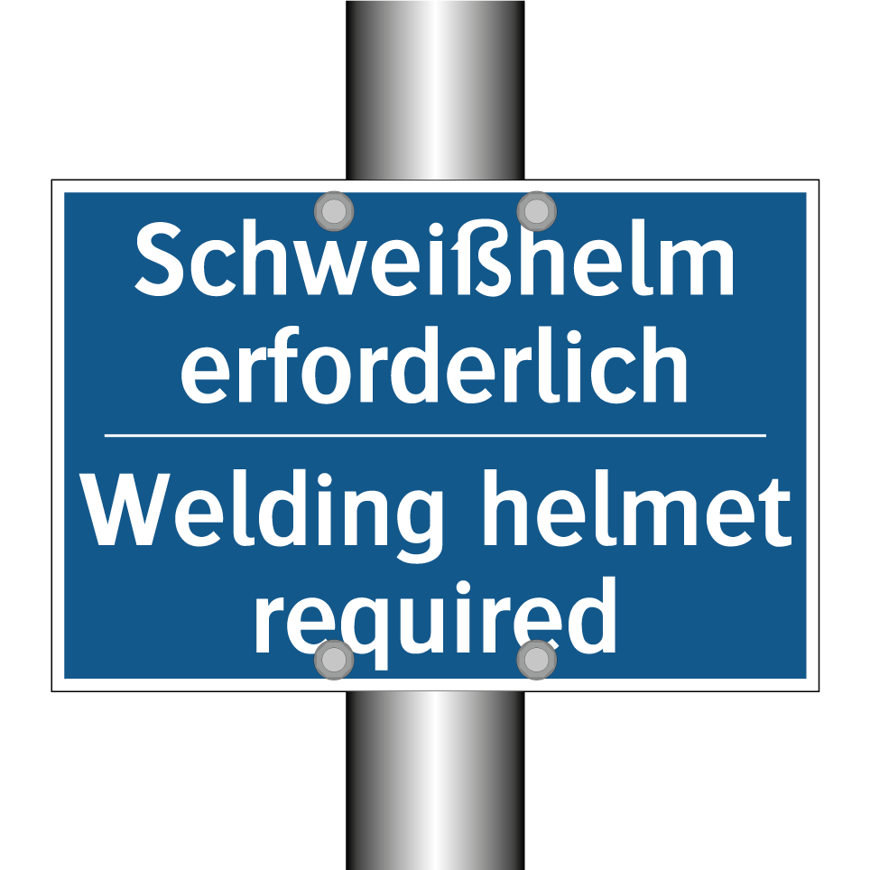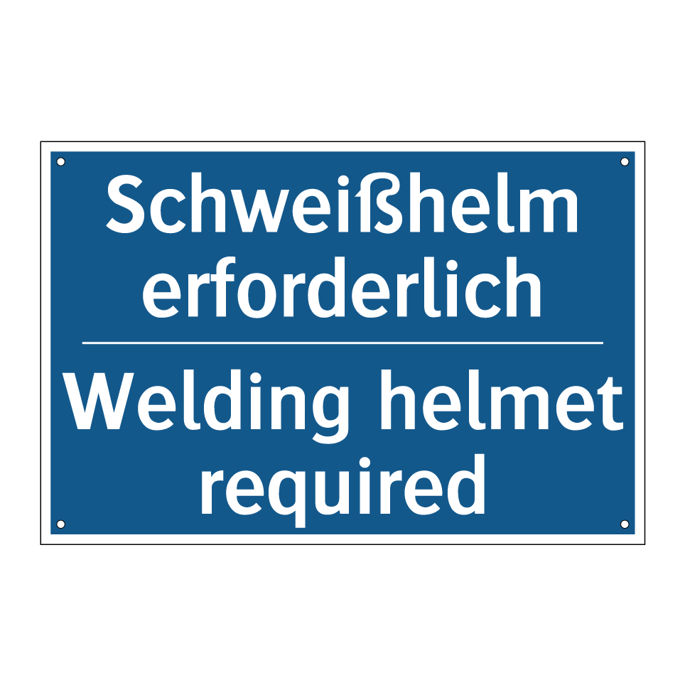 Diese Gebotsschild ist ideal für Arbeitsumgebungen, in denen das Tragen eines Schweißhelms unerlässlich ist. Mit ihrer auffälligen blauen Hintergrundfarbe und der klaren weißen Schrift sorgt sie dafür, dass Sicherheitsvorschriften leicht erkennbar sind. Die zweisprachige Beschriftung auf Deutsch und Englisch macht sie besonders nützlich in internationalen oder mehrsprachigen Teams, da sie die Kommunikation und das Verständnis verbessert. Diese Sicherheitskennzeichnung kann in Werkstätten, Fabriken oder anderen industriellen Bereichen angebracht werden, um die Einhaltung der Sicherheitsvorschriften zu gewährleisten. Platzieren Sie sie an gut sichtbaren Stellen, um die Sicherheit aller Mitarbeiter zu erhöhen.