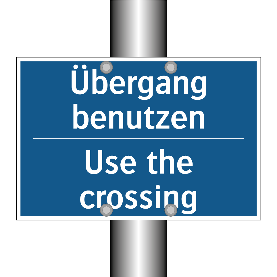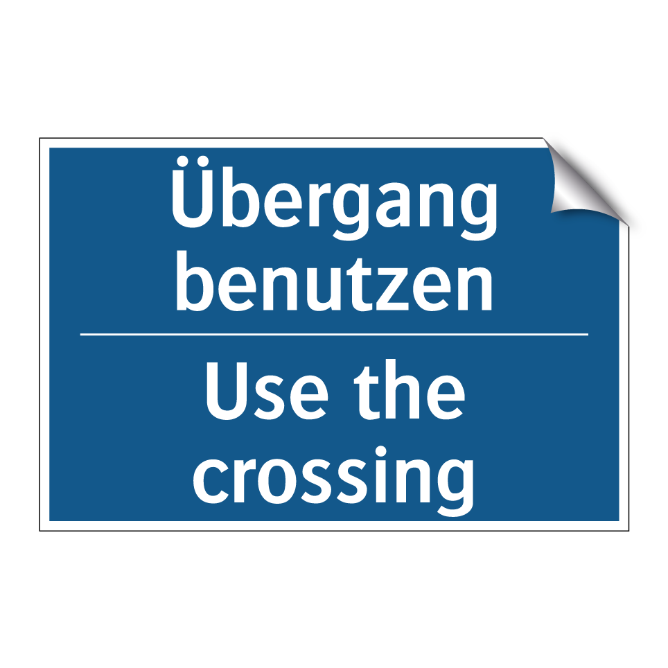 Zweisprachiges Verbotsschild mit deutschem Text Übergang benutzen und englischem Text Use the crossing