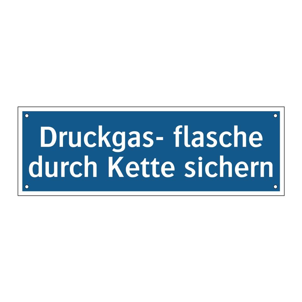 Gebotsschild mit dem Text Druckgas- flasche durch Kette sichern