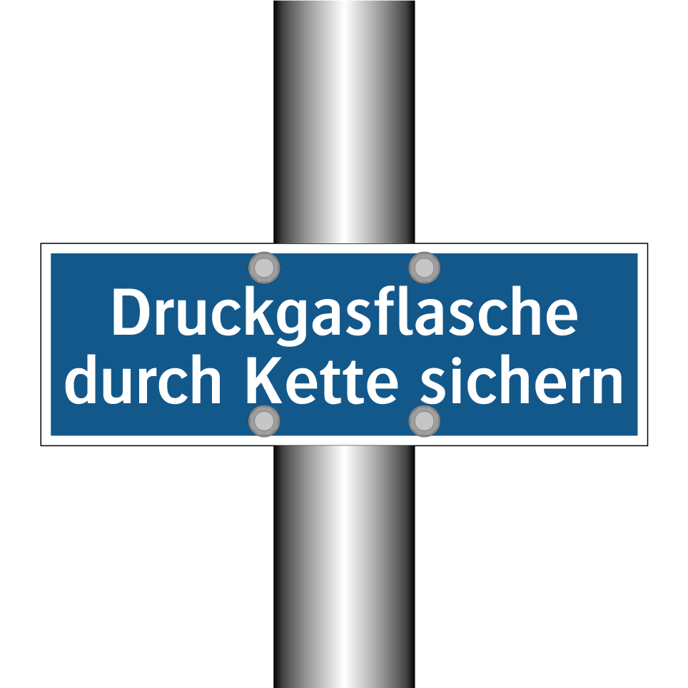 Gebotsschild mit dem Text Druckgasflasche durch Kette sichern