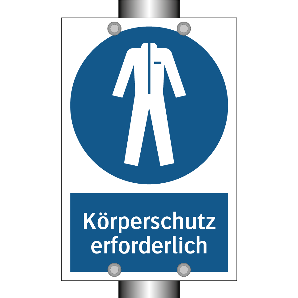 Gebotsschild mit dem Text Körperschutz erforderlich