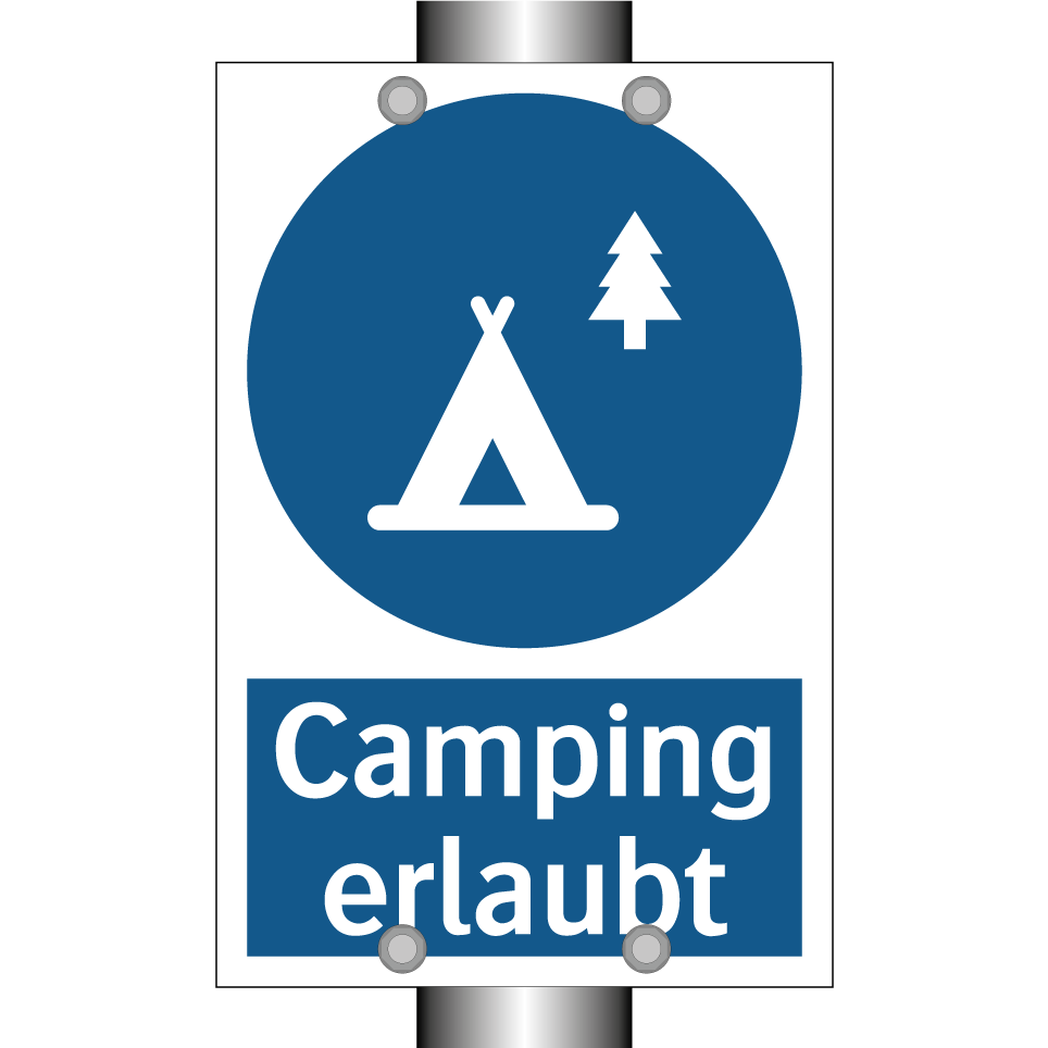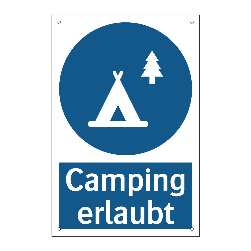 Diese Gebotsschild mit blauem Hintergrund und weißer Schrift ist ideal für Campingplätze und Freizeitparks, um Besuchern klar zu signalisieren, dass Zelten an diesem Ort gestattet ist. Die deutliche Symbolik sorgt dafür, dass die Botschaft sofort verstanden wird, selbst aus der Ferne. Diese Beschilderung kann an Eingängen, Parkplätzen oder in der Nähe von Erholungsgebieten angebracht werden, um Camper willkommen zu heißen und die Nutzung des Geländes zu fördern. Durch die klare und prägnante Darstellung wird sichergestellt, dass keine Missverständnisse entstehen und die Besucher sich sicher fühlen, dass sie an der richtigen Stelle sind.