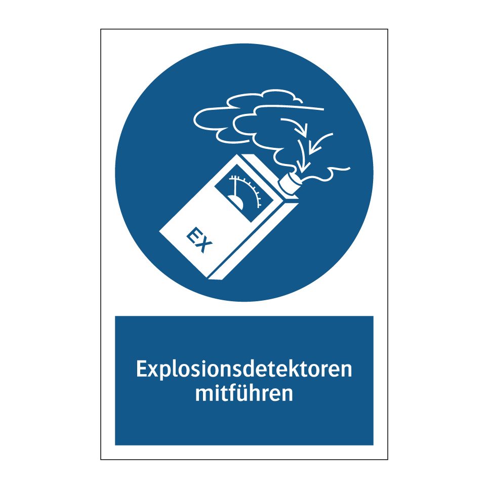 Gebotsschild mit dem Text Explosionsdetektoren mitführen