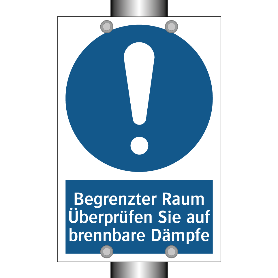 Gebotsschild mit dem Text Begrenzter Raum Überprüfen Sie auf brennbare Dämpfe