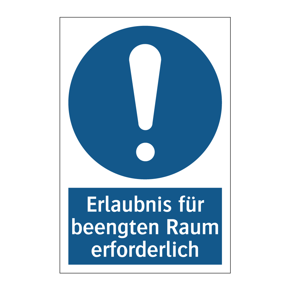 Gebotsschild mit dem Text Erlaubnis für beengten Raum erforderlich