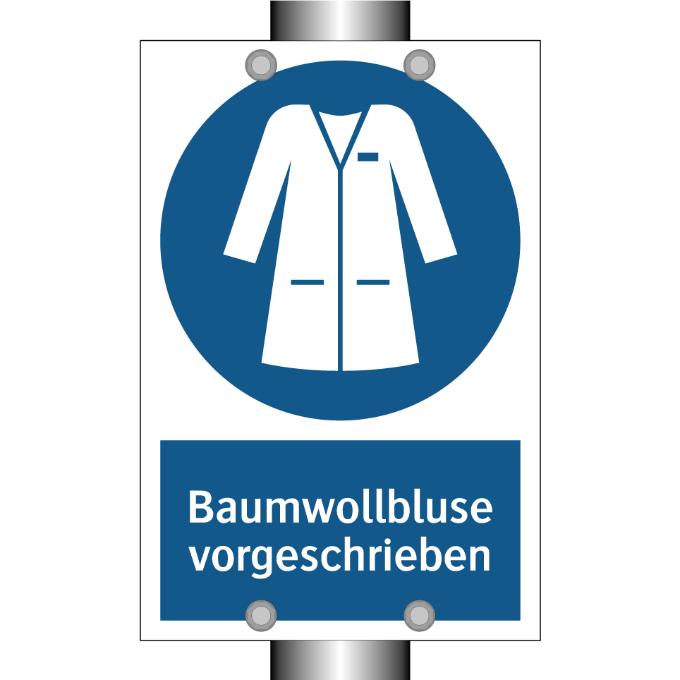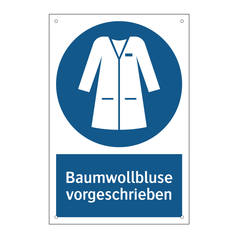 Gebotsschild mit dem Text Baumwollbluse vorgeschrieben