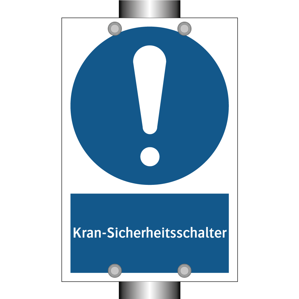 Gebotsschild mit dem Text Kran-Sicherheitsschalter