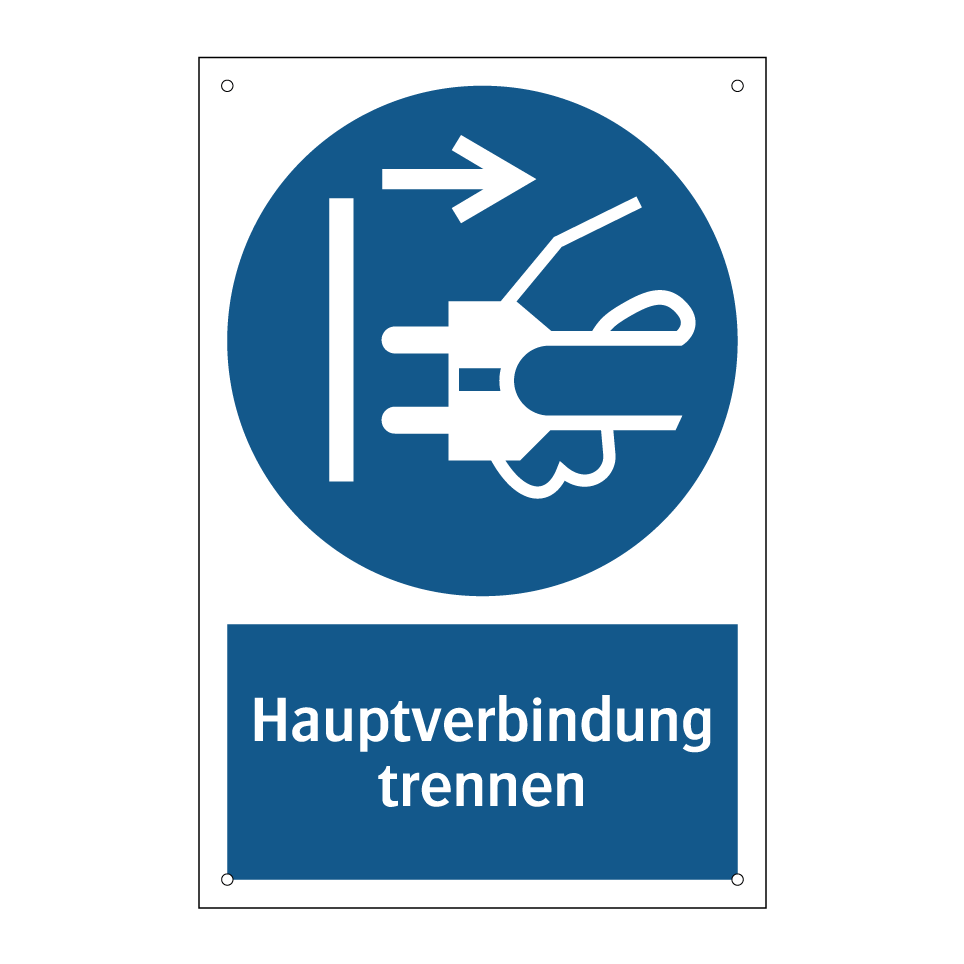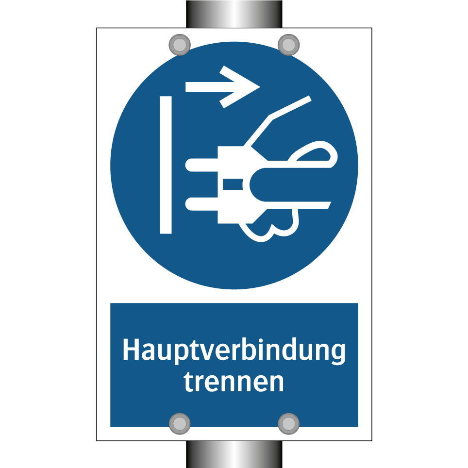 Gebotsschild mit dem Text Hauptverbindung trennen