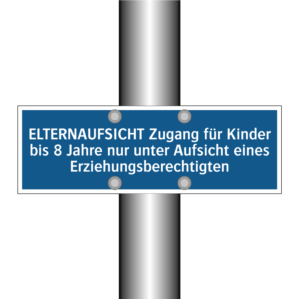 Gebotsschild mit dem Text ELTERNAUFSICHT Zugang für Kinder bis 8 Jahre nur unter Aufsicht eines Erziehungsberechtigten