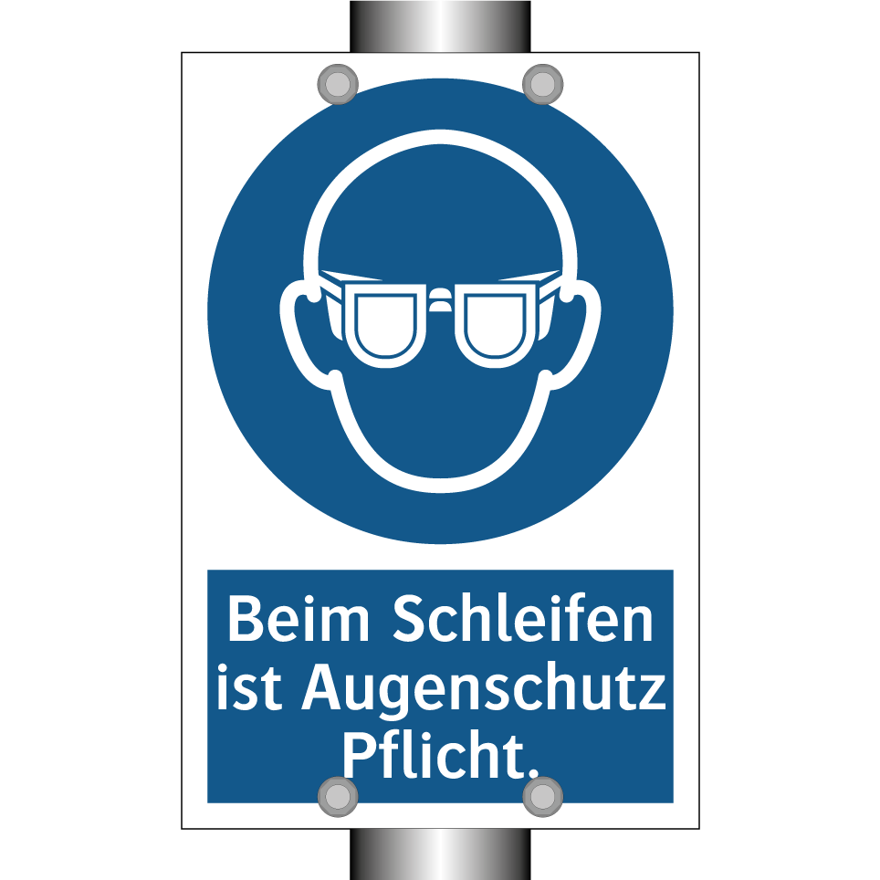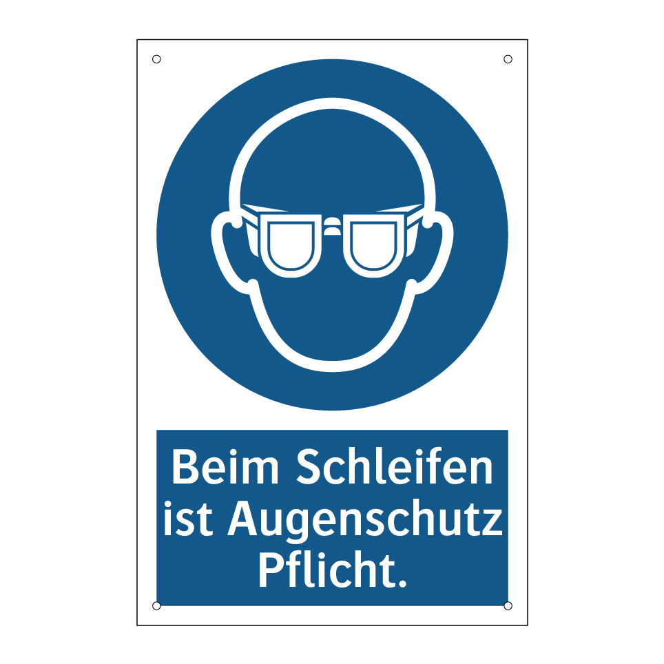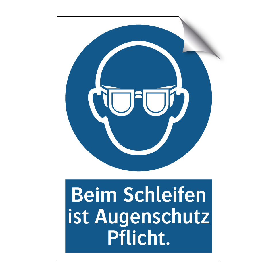 Gebotsschild mit dem Text Beim Schleifen ist Augenschutz Pflicht.