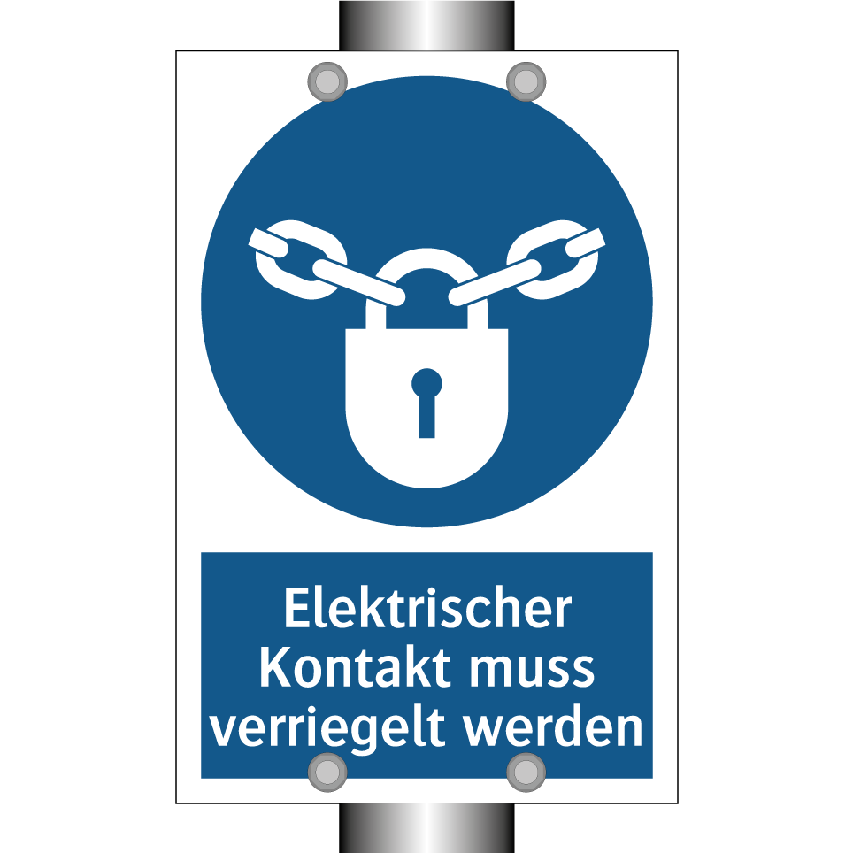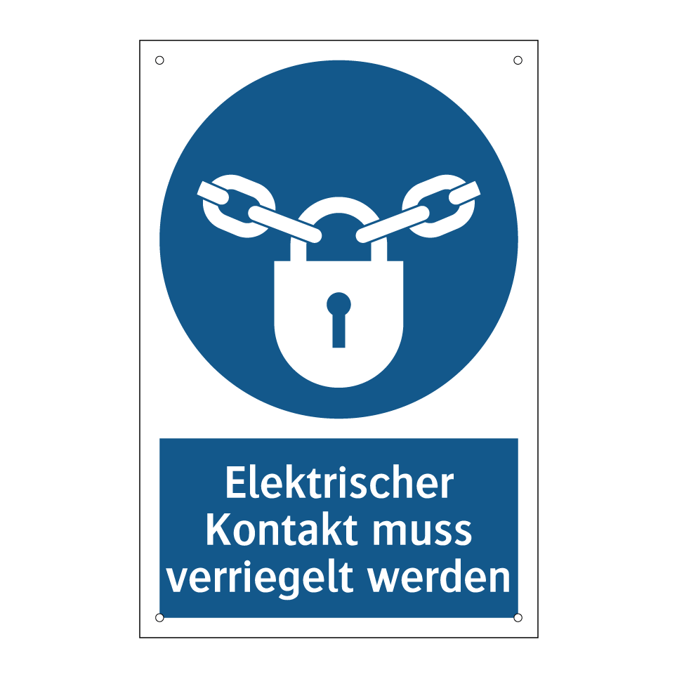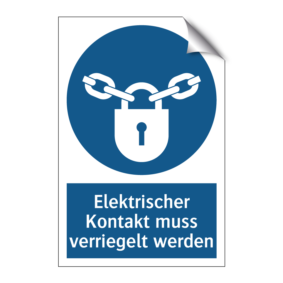 Gebotsschild mit dem Text Elektrischer Kontakt muss verriegelt werden