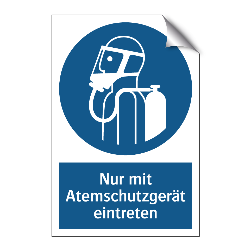 Gebotsschild mit dem Text Nur mit Atemschutzgerät eintreten