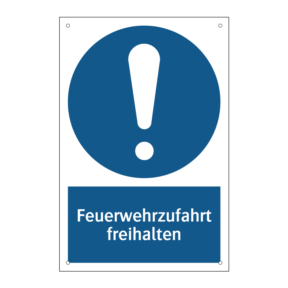 Gebotsschild mit dem Text Feuerwehrzufahrt freihalten