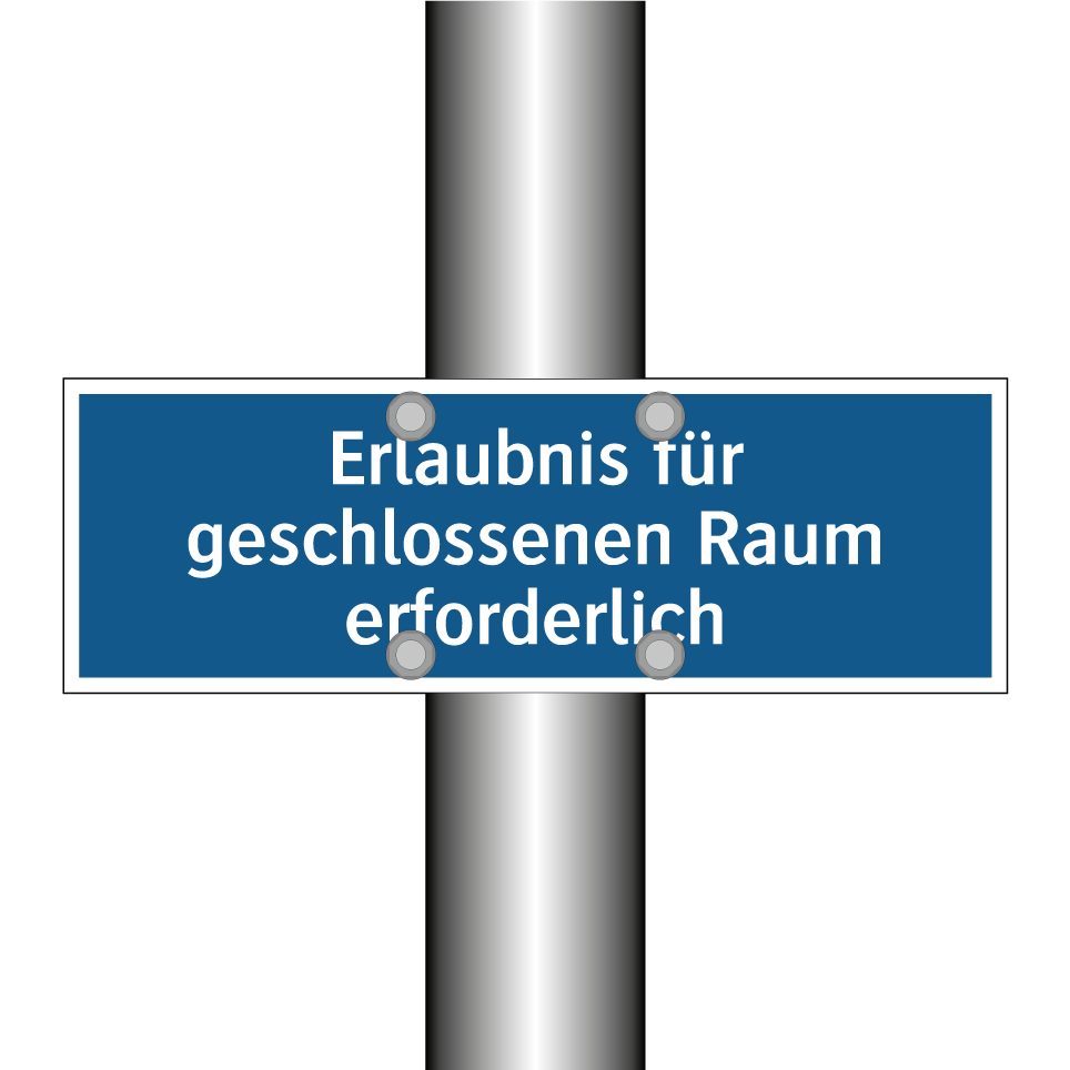 Gebotsschild mit dem Text Erlaubnis für geschlossenen Raum erforderlich