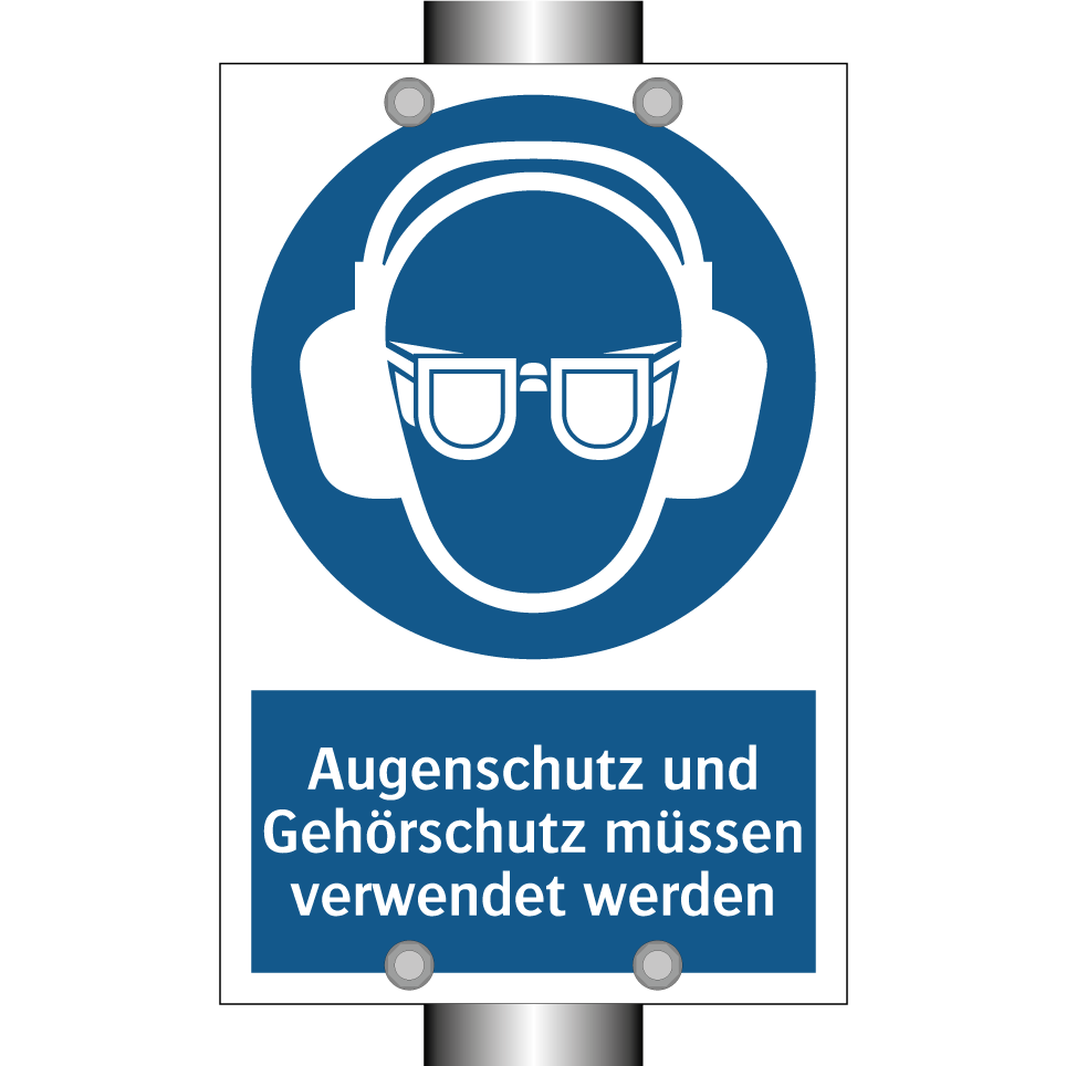 Diese Gebotsschild ist ein unverzichtbares Element für die Sicherheit am Arbeitsplatz. Mit ihrer klaren blauen Hintergrundfarbe und der auffälligen weißen Schrift signalisiert sie unmissverständlich die Notwendigkeit, Augen- und Gehörschutz zu tragen. Ideal für den Einsatz in industriellen Umgebungen, Baustellen oder Werkstätten, wo Lärm und potenzielle Gefahren für die Augen allgegenwärtig sind. Diese Sicherheitsanweisung kann an Eingängen, in Produktionsbereichen oder in der Nähe von Maschinen platziert werden, um sicherzustellen, dass alle Mitarbeiter und Besucher die erforderlichen Schutzmaßnahmen ergreifen. Durch die strategische Platzierung dieser Gebotsschild wird das Bewusstsein für Arbeitsschutz erhöht und das Risiko von Unfällen minimiert.