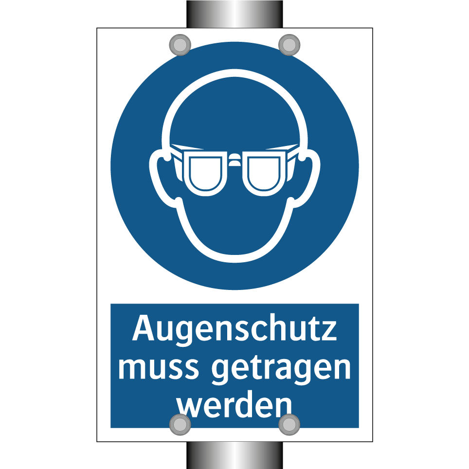 Gebotsschild mit dem Text Augenschutz muss getragen werden