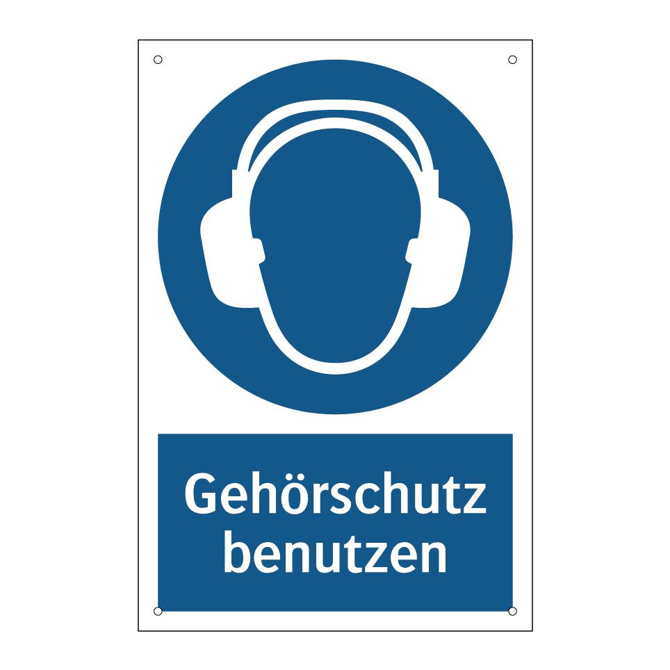 Gebotsschild mit dem Text Gehörschutz benutzen