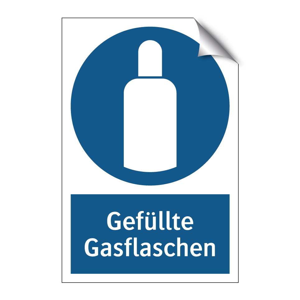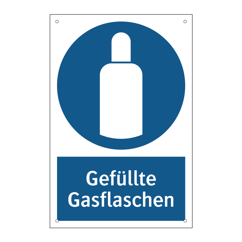 Gebotsschild mit dem Text Gefüllte Gasflaschen