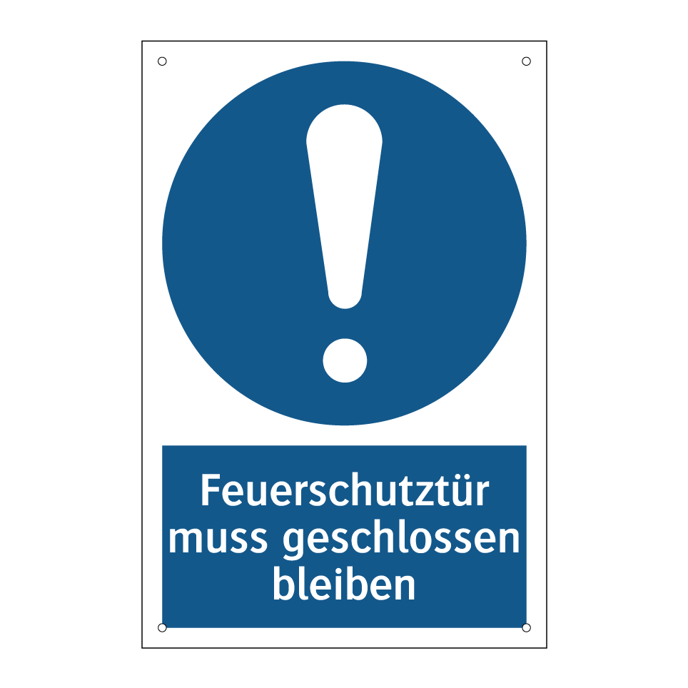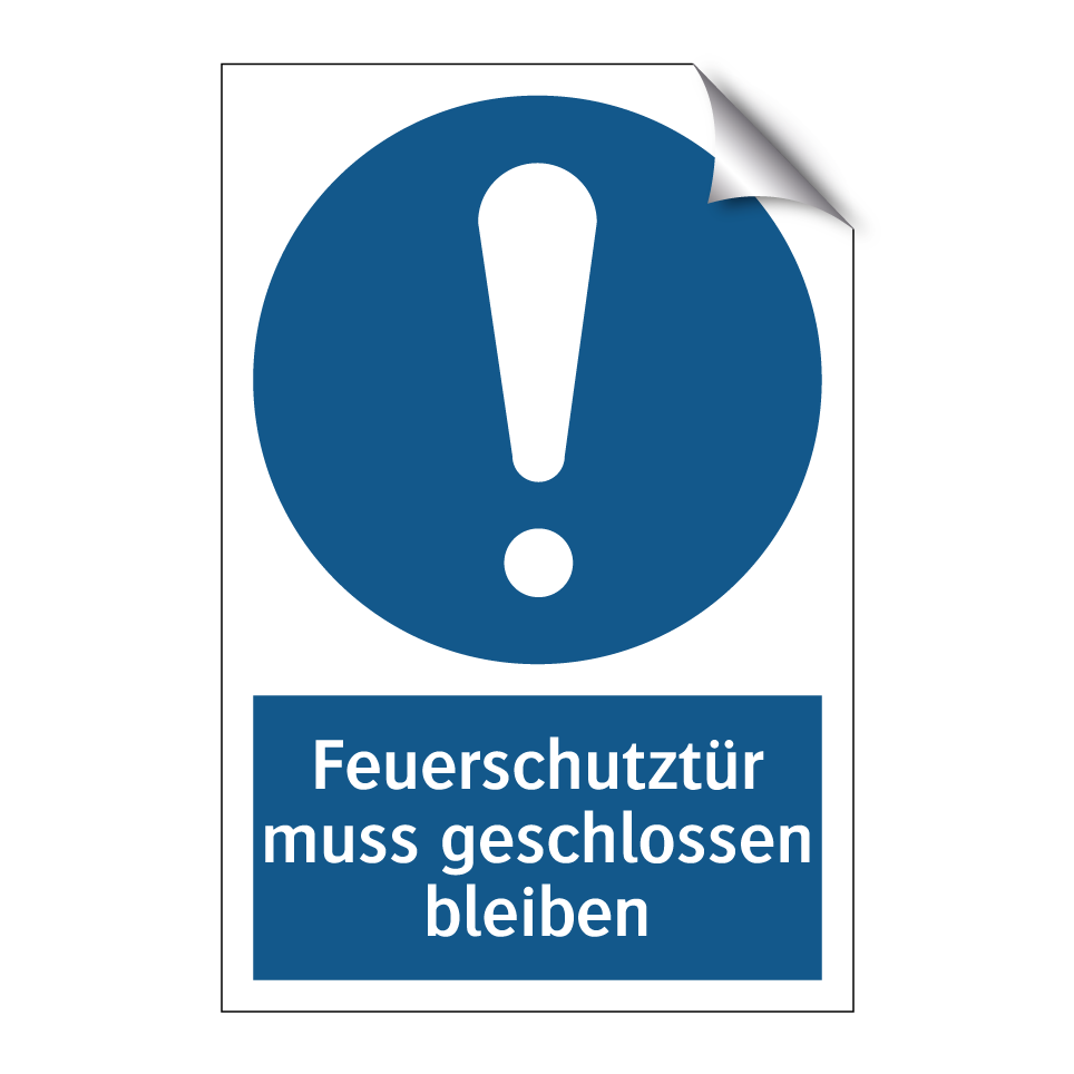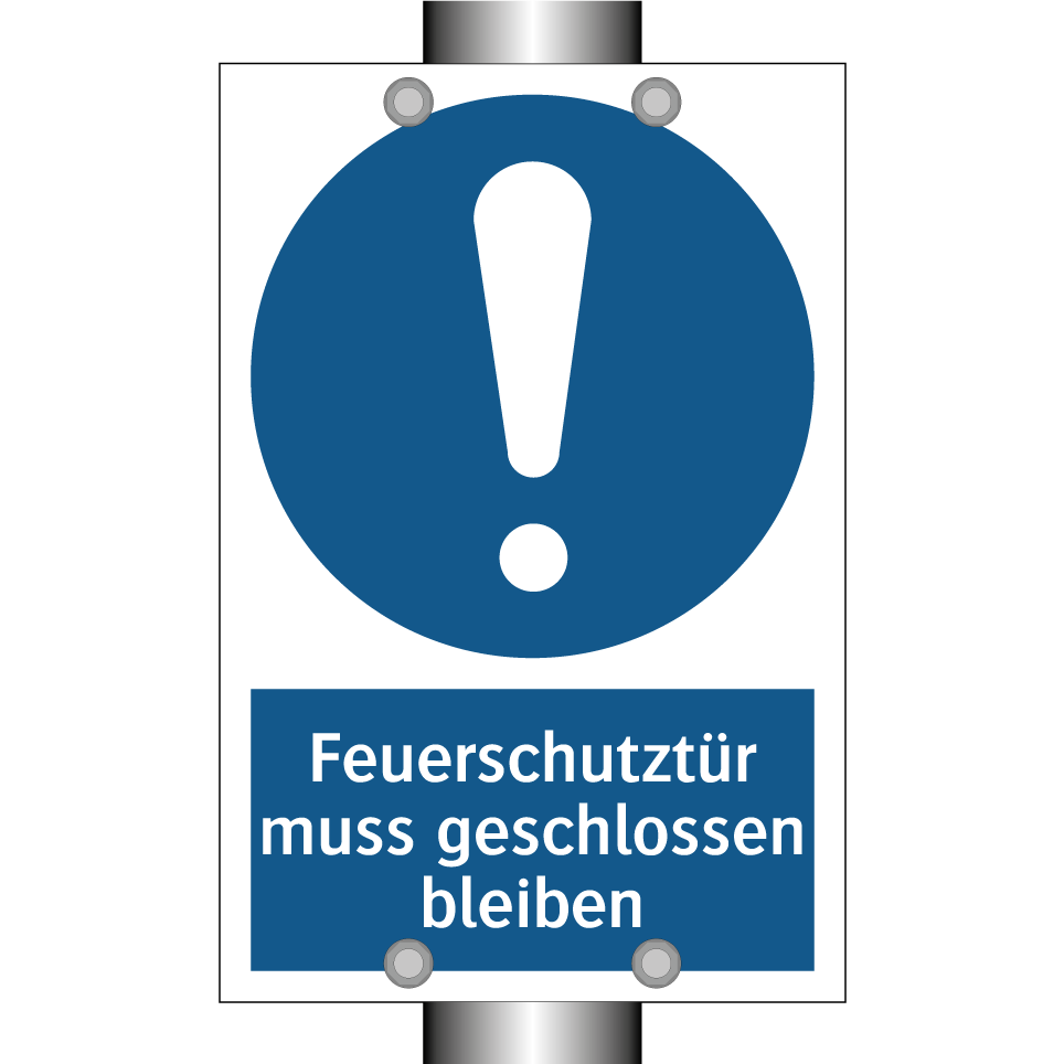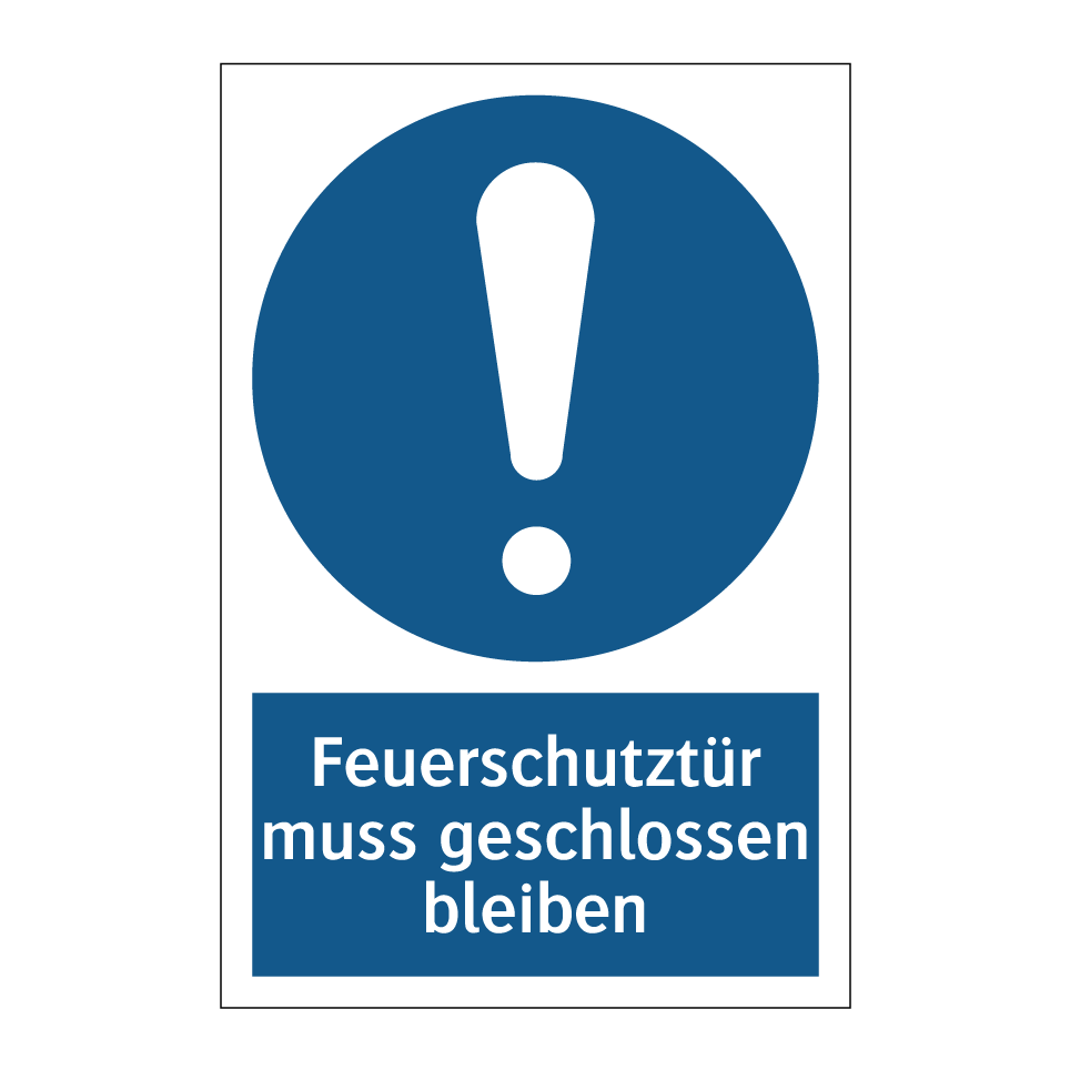 Gebotsschild mit dem Text Feuerschutztür muss geschlossen bleiben
