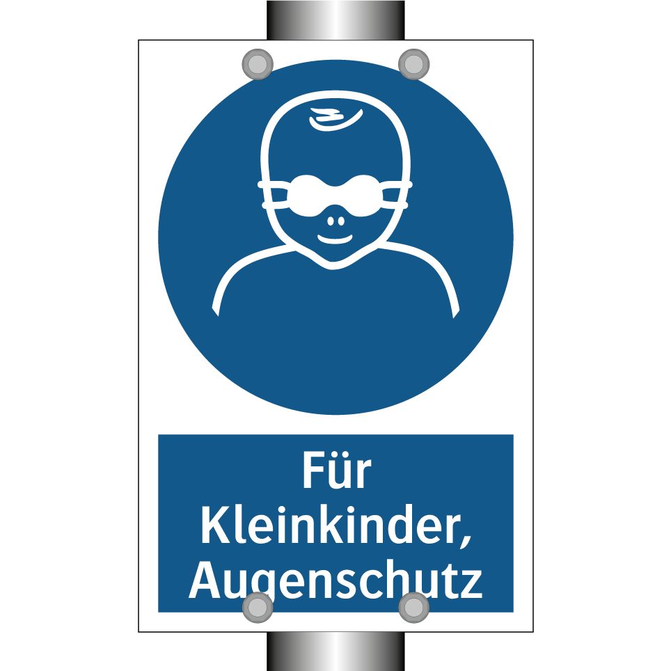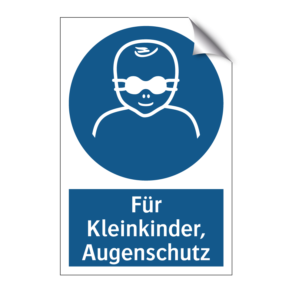 Gebotsschild mit dem Text Für Kleinkinder, Augenschutz
