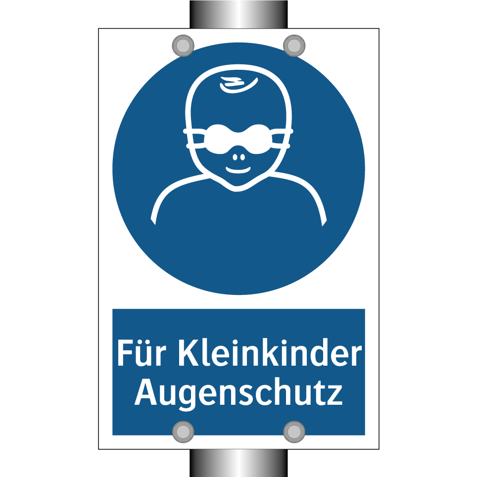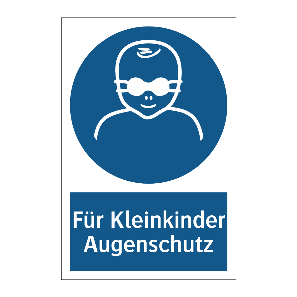 Gebotsschild mit dem Text Für Kleinkinder Augenschutz