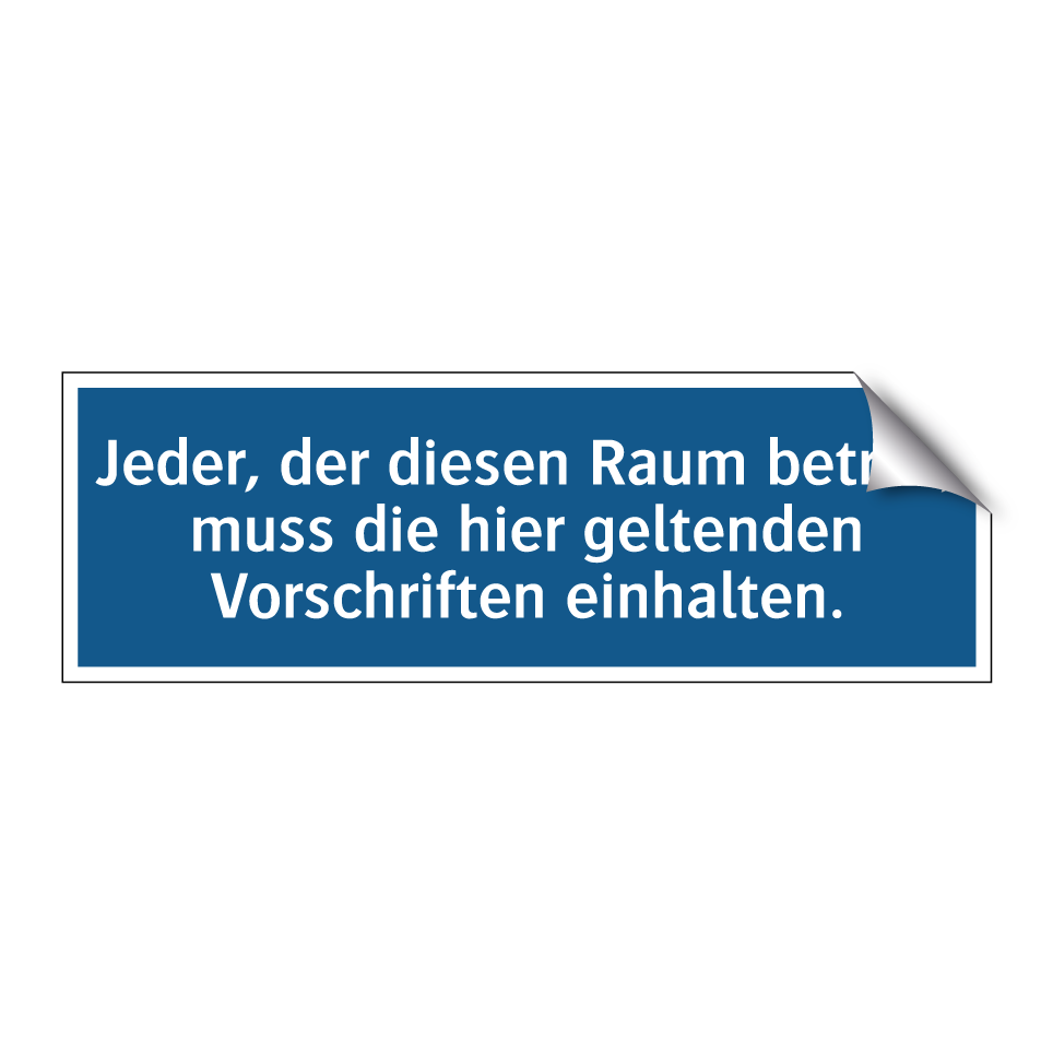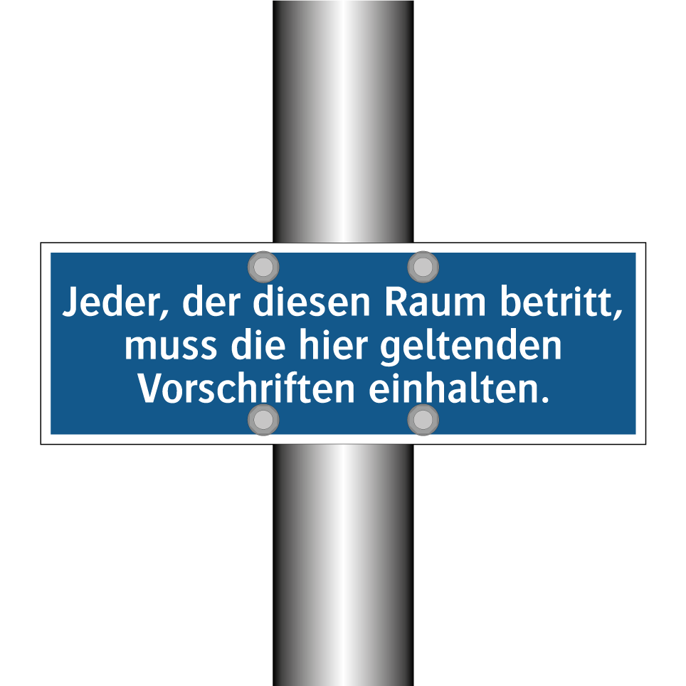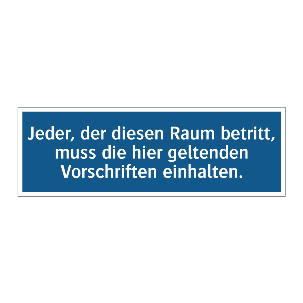 Gebotsschild mit dem Text Jeder, der diesen Raum betritt, muss die hier geltenden Vorschriften einhalten.