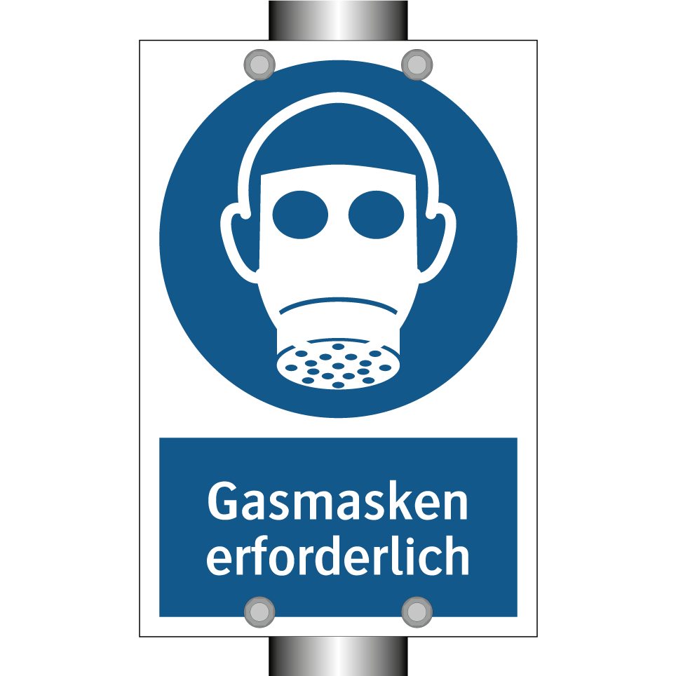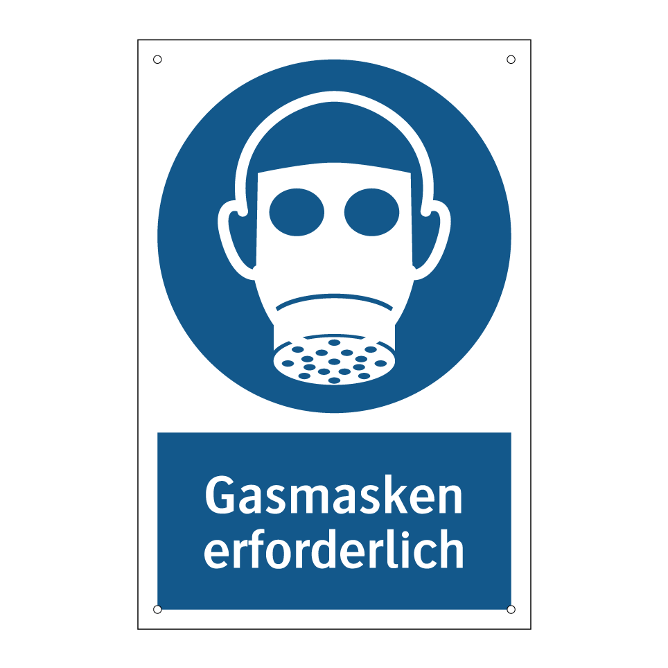 Gebotsschild mit dem Text Gasmasken erforderlich