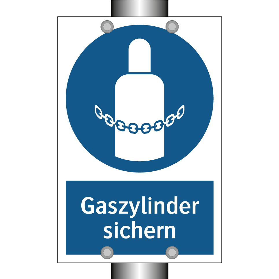 Diese Gebotsschild ist ein unverzichtbares Element für die Sicherheit in Bereichen, in denen Gasflaschen verwendet werden. Mit ihrer auffälligen blauen Hintergrundfarbe und der klaren weißen Schrift sorgt sie dafür, dass die Anweisung, Gasflaschen zu sichern, nicht übersehen wird. Ideal für den Einsatz in industriellen Umgebungen, Laboren oder Werkstätten, wo der sichere Umgang mit Gasflaschen von größter Bedeutung ist. Diese Sicherheitsanweisung kann an Wänden, Türen oder in der Nähe von Lagerbereichen für Gasflaschen angebracht werden, um das Risiko von Unfällen zu minimieren. Die Gebotsschilder tragen dazu bei, die Einhaltung von Sicherheitsvorschriften zu gewährleisten und das Bewusstsein für potenzielle Gefahren zu schärfen.
