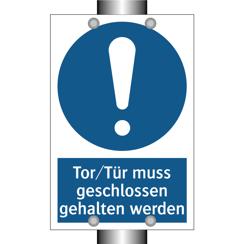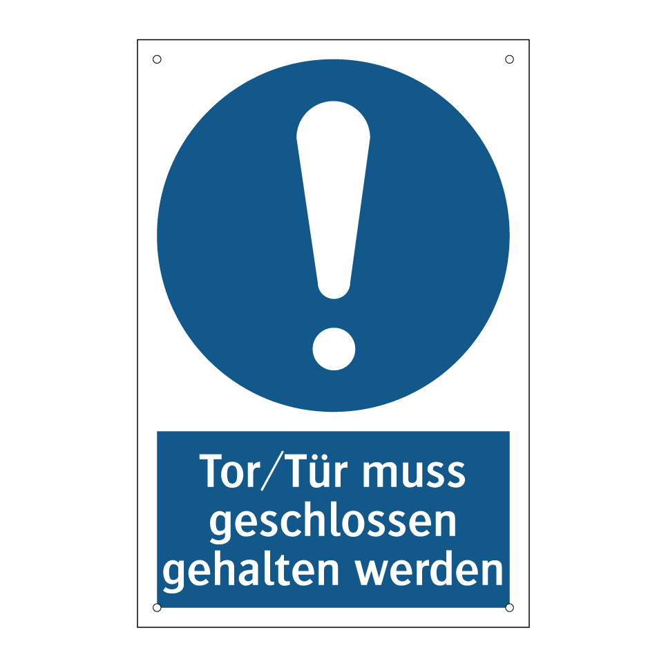 Gebotsschild mit dem Text Tor/Tür muss geschlossen gehalten werden