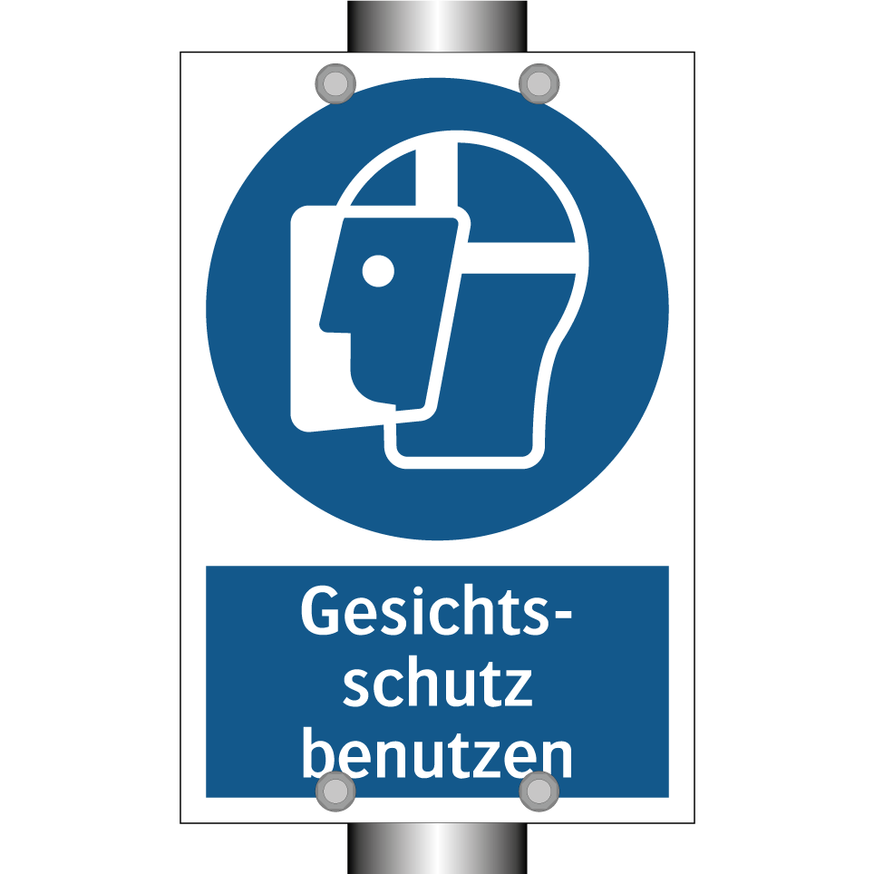 Gebotsschild mit dem Text Gesichts- schutz benutzen