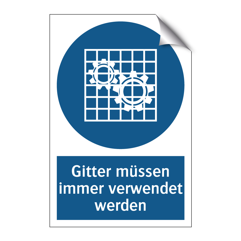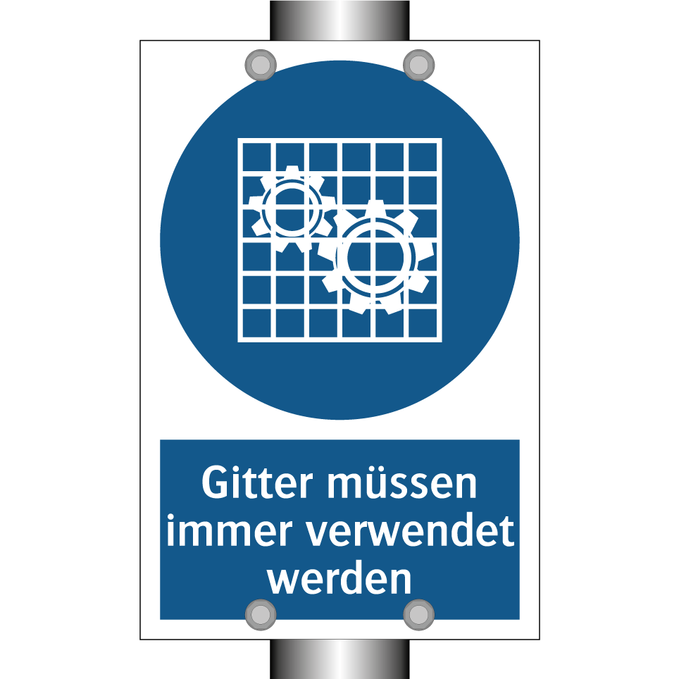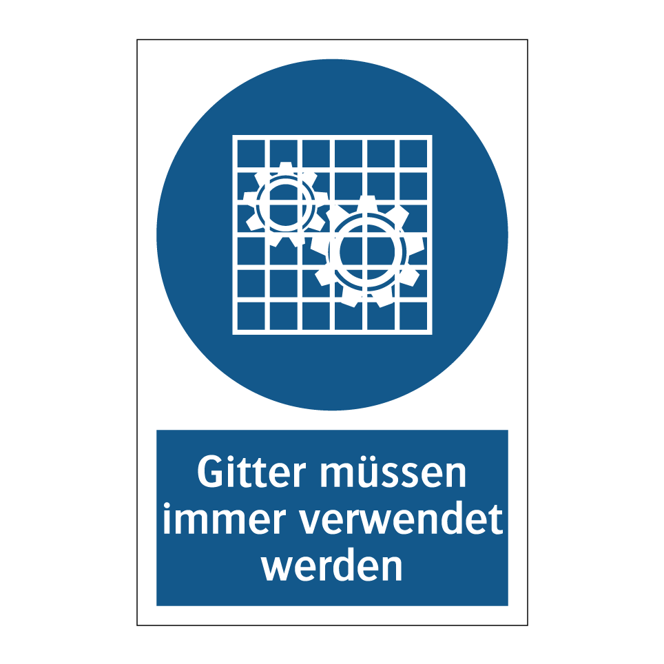 Gebotsschild mit dem Text Gitter müssen immer verwendet werden