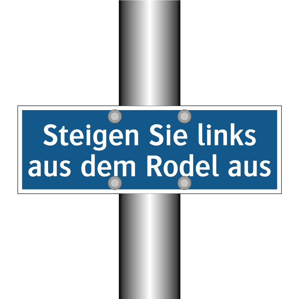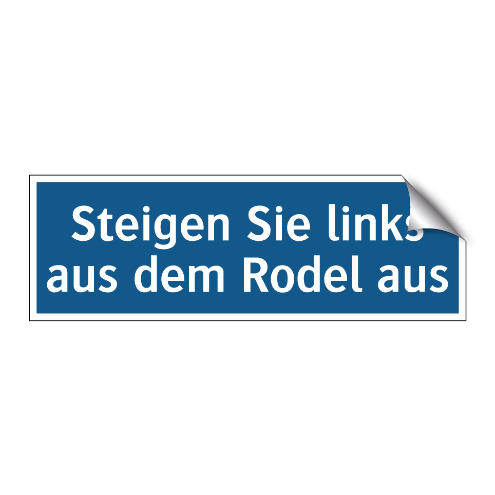 Gebotsschild mit dem Text Steigen Sie links aus dem Rodel aus