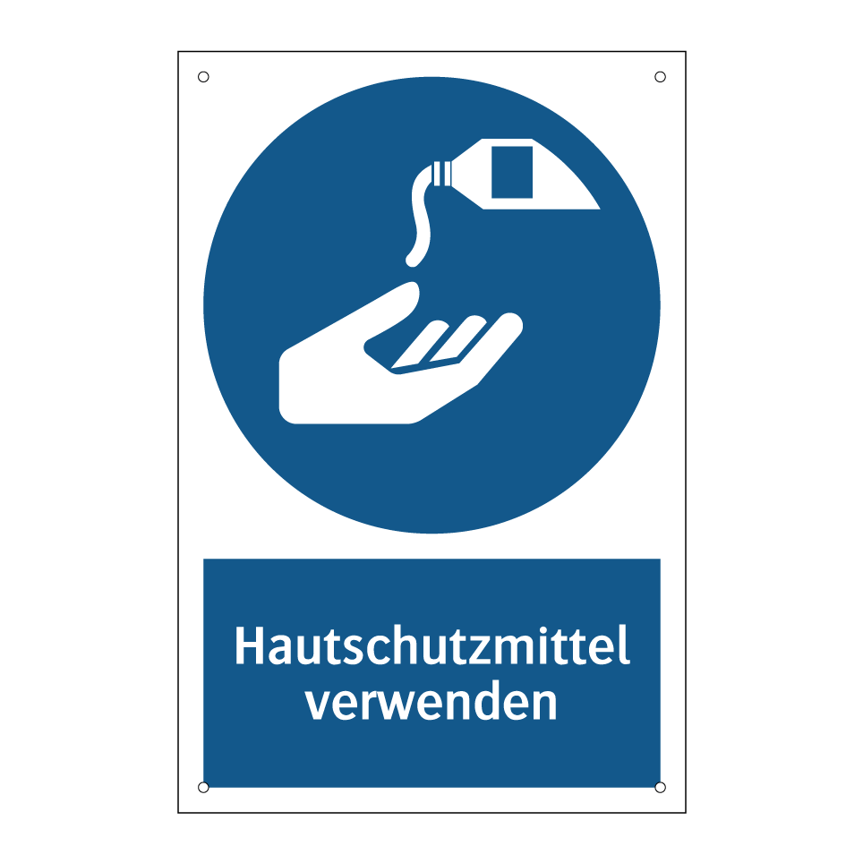 Gebotsschild mit dem Text Hautschutzmittel verwenden